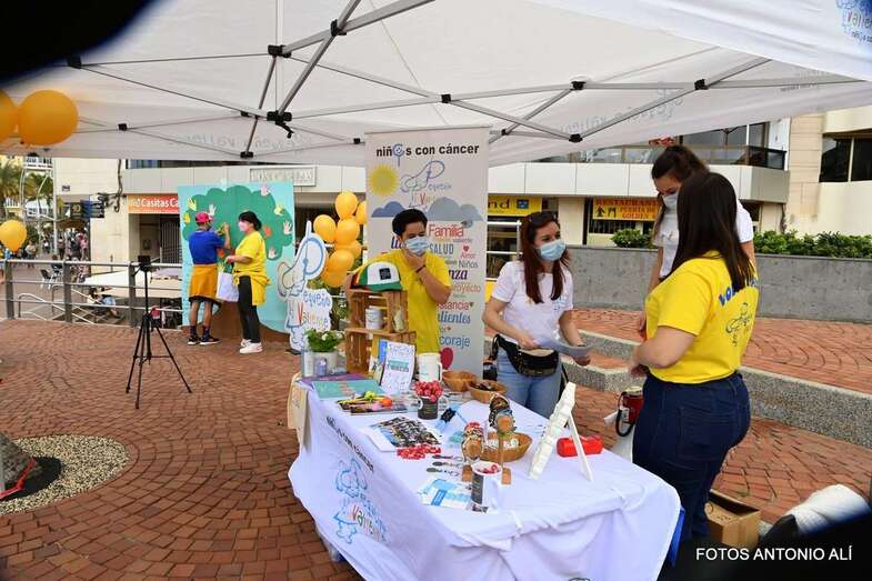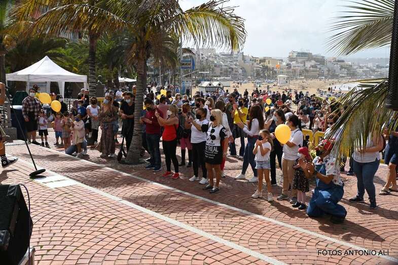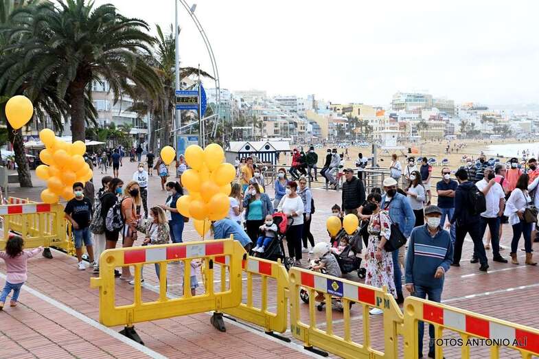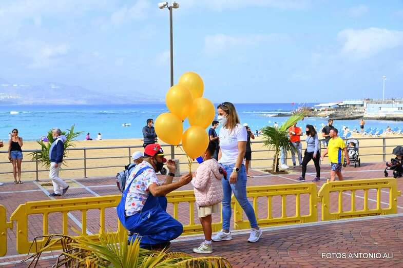 La Asociación Pequeño Valiente conmemoró este sábado el Día Internacional del Cáncer Infantil en la plaza Saulo Torón, situada en la capitalina playa de Las Canteras.
