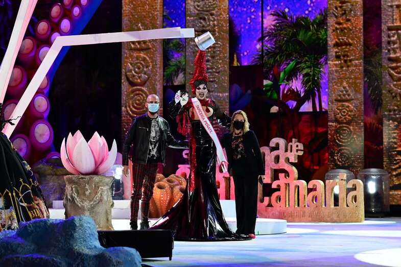 El Excmo. Ayuntamiento de la Real Ciudad de Gáldar presenta el espectáculo ‘¡Por fin cariño!’ de Drag Vulcano, con diseño propio y de Daniel Rivero Suárez.