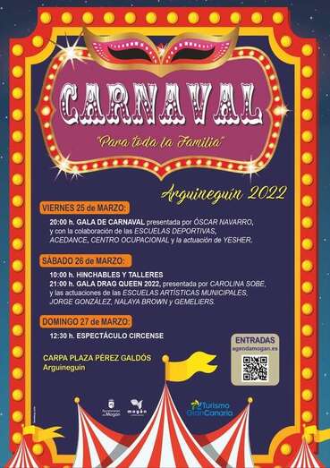 El sábado día 26 los más pequeños disfrutarán de los talleres carnaval e hinchables a las 10:00 horas en la carpa permanentemente de la plaza Pérez Galdós de Arguineguín, y el viernes 1 de abril a las 17:30 horas en la plaza de Las Gañanías.