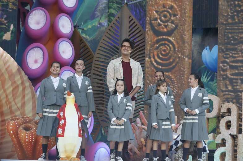 El actor José Carlos Campos, convertido en profesor, y las protagonistas del musical «Amelia», en el papel de alumnas, fueron los encargados de conducir una gala mágica que contó con siete aspirantes al título y que estuvo amenizada con el sabor y el ritmo carnavalero de las comparsas infantiles Brisa de volcán y Lianceiros Junior y la murga infantil Los Lechoncitos.