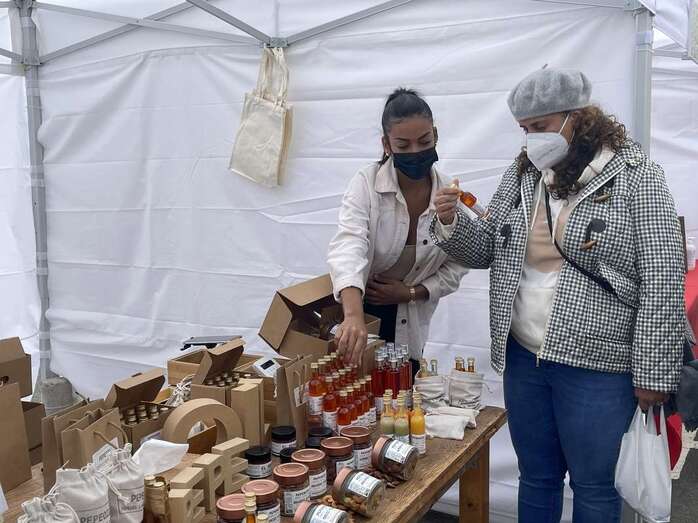 Las fresas han sido uno de los productos que se agotaron desde primera hora y que obligó a los productores del municipio a traer más mercancía. Lo mismo ha sucedido con las rosquillas de naranja o la mermelada de tuno de Dismepe Canarias “hemos tenido que reponer este producto en concreto porque está teniendo mucha salida, al igual, que la crema de cacahuete y la de turrón” comentaba Laura Mejías.