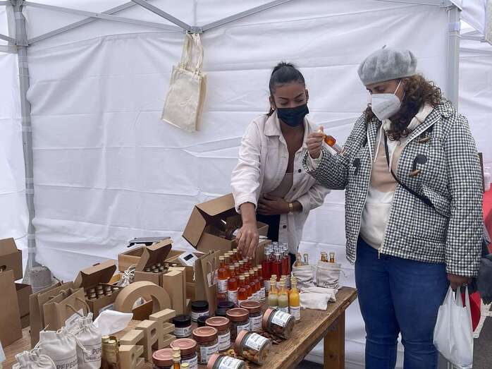 Una feria en la que no ha faltado la miel, el vino, helados, microvegetales, turrones, zumos naturales, licores, guarapo, panes artesanales y hasta croquetas. Y es que para conseguir algunas de las delicatessem de la Croquetería de Moya era necesario hasta hacer cola y eso que han traído unos trescientos kilos de croquetas de las que se han vendido prácticamente todas como explicaba su propietario Samuel García.