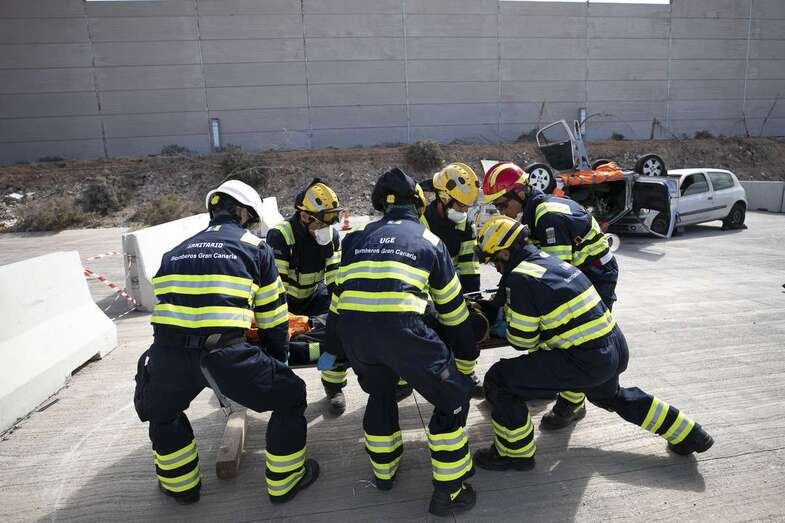 El equipo que acudirá finalmente a Lanzarote estará formado por 6 bomberos -un mando, uno con funciones sanitarias y cinco para ejecutar la extracción-, que realizan en esta recta final maniobras con varios vehículos implicados. Tras valorar los aciertos y las mejoras, reproducen la práctica para interiorizar la mejor dinámica.
