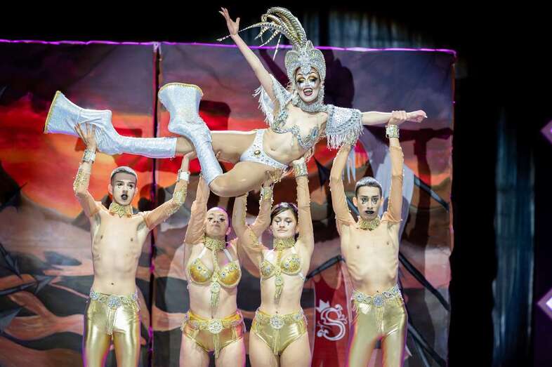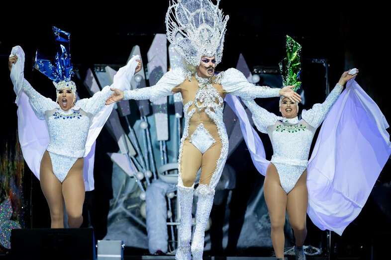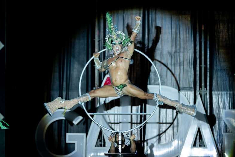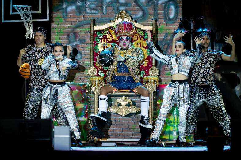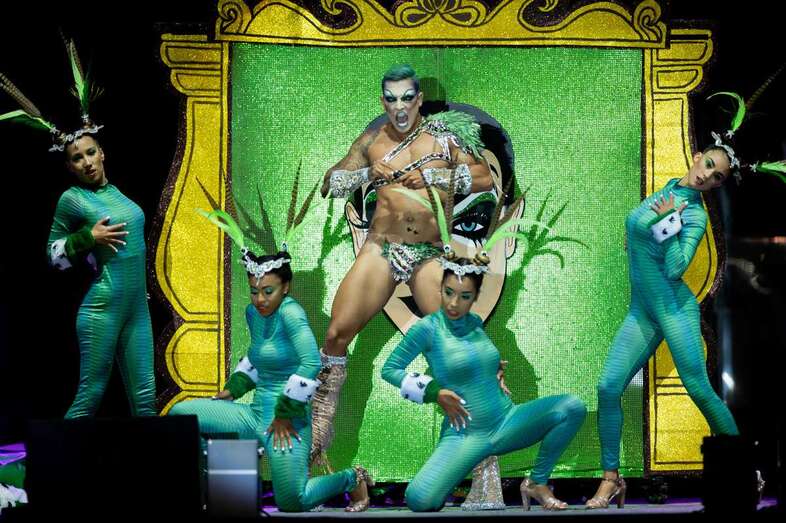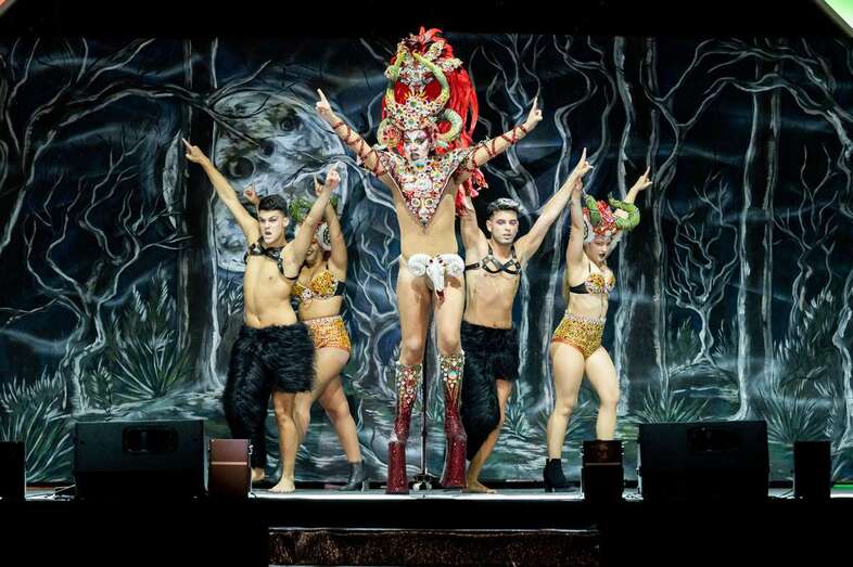 Drag Quirón conseguía meterse al público en el bolsillo desde el principio al aparecer en el escenario como un príncipe, no azul, sino vestido de un llamativo color verde, que terminaba convirtiéndose en un impresionante pavo real. Uno de los momentos que ponía al público en pie era precisamente en su actuación, cuando Quirón quedaba suspendido en un aro giratorio varios metros por encima del suelo.