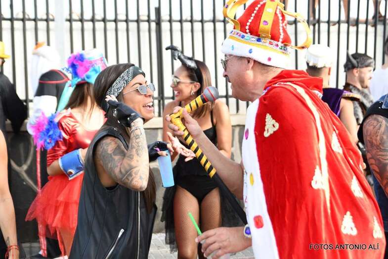 La alcaldesa , Conchi Narváez, acudió a presenciar la salida junto a parte de su gobierno. Medio en broma, medio en serio, en pleno solajero, confesó que se está replanteando su apuesta de llevar el carnaval para siempre a los veranos.
