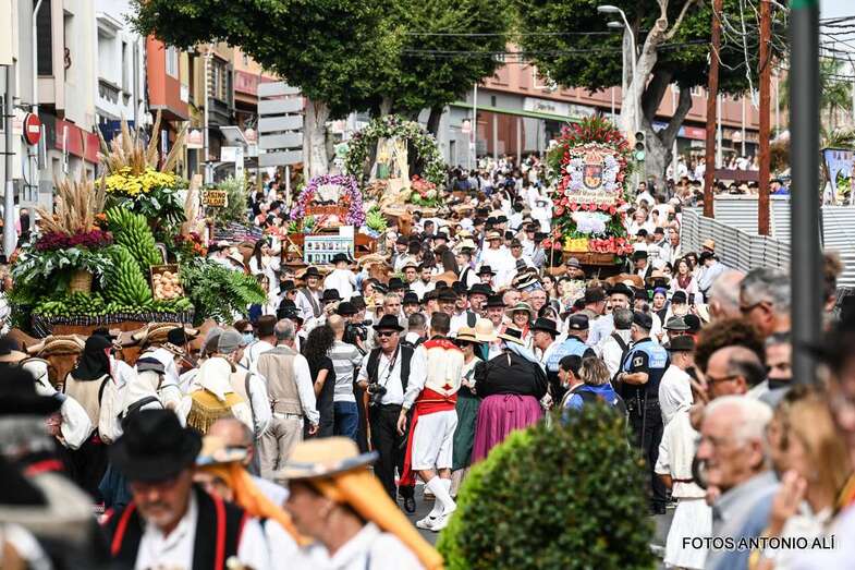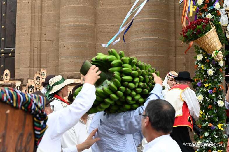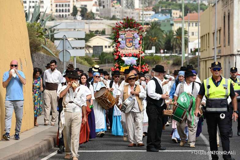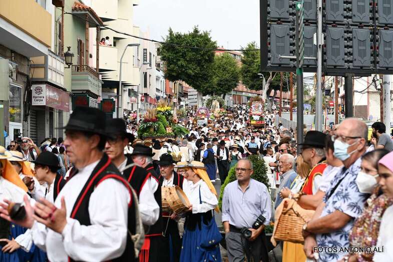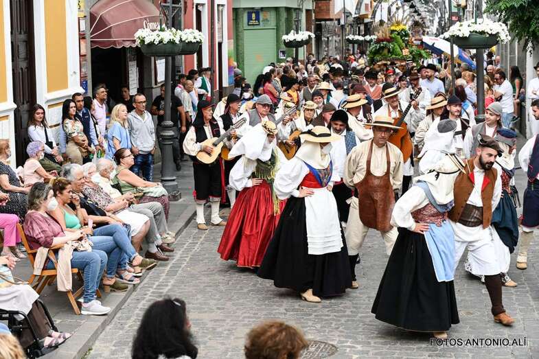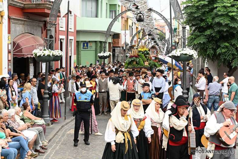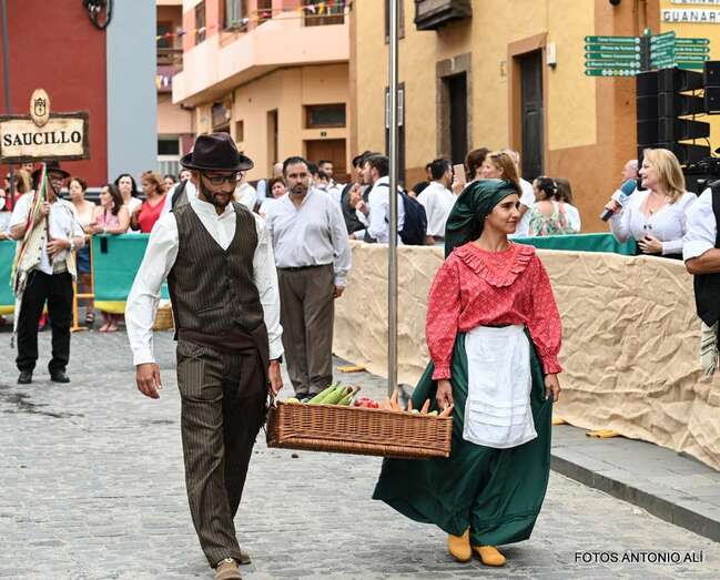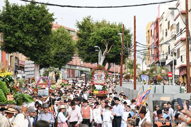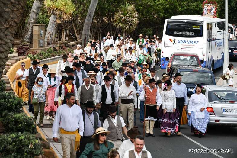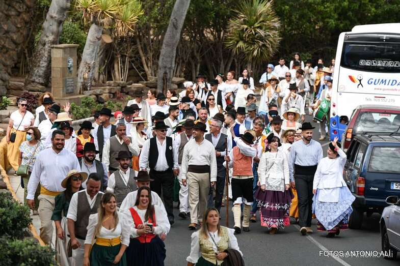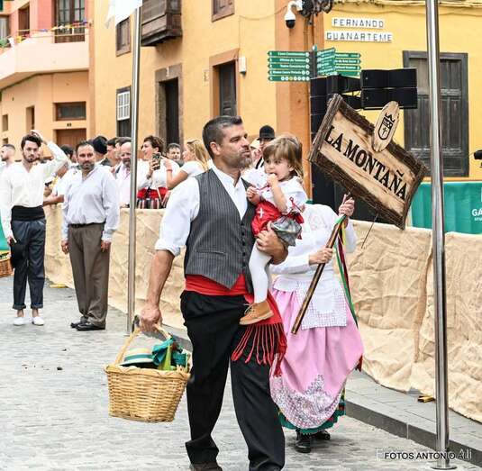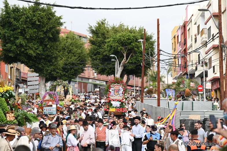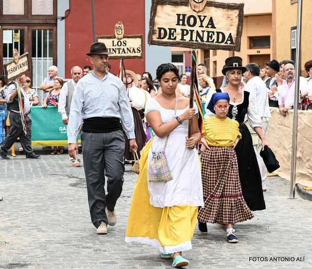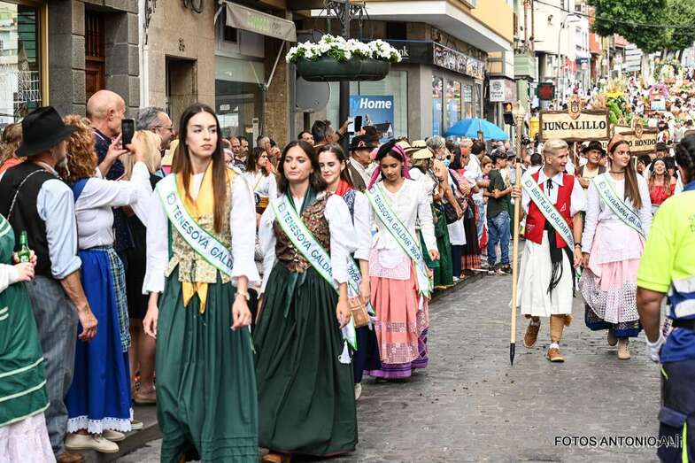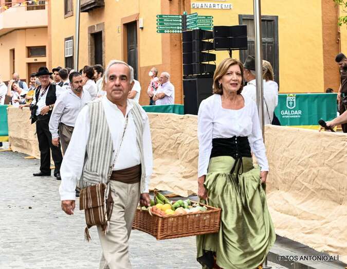 Después de dos años de parón obligado por la pandemia, la alegría festiva volvió a las calles de Gáldar con la tradicional romería en honor al patrón Santiago Apóstol, un evento festivo al que asistieron decenas de teldenses.