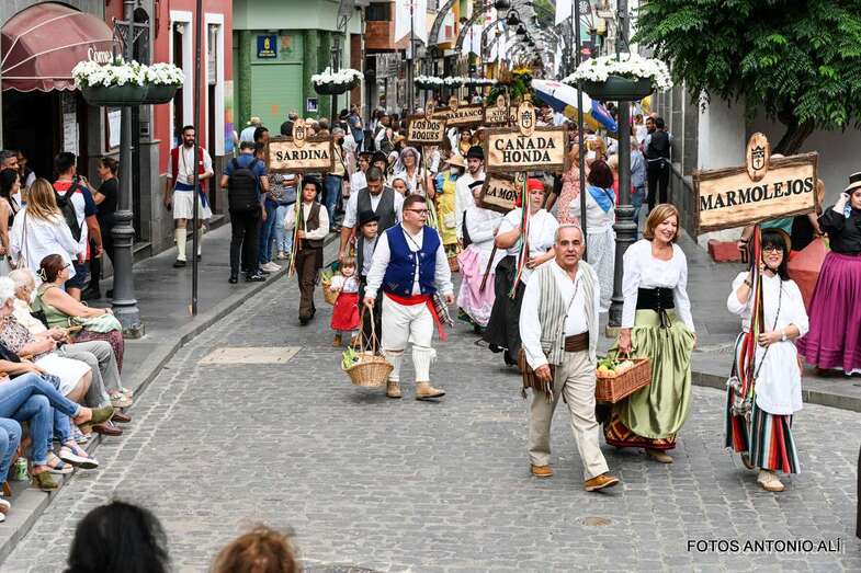 Una representación de cada uno de los barrios y pagos, escenificó la importancia de la tarde romera, a la que no faltó la corporación hermana de Guía, trayendo el querido sonido de las fiestas de Las Marías.