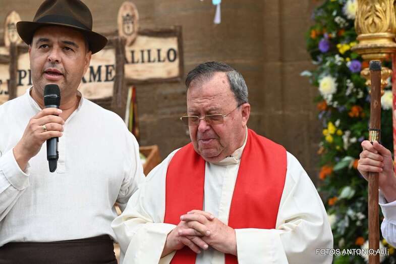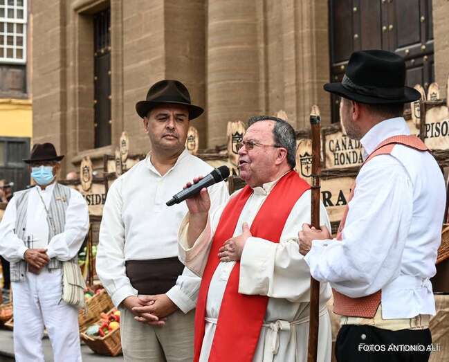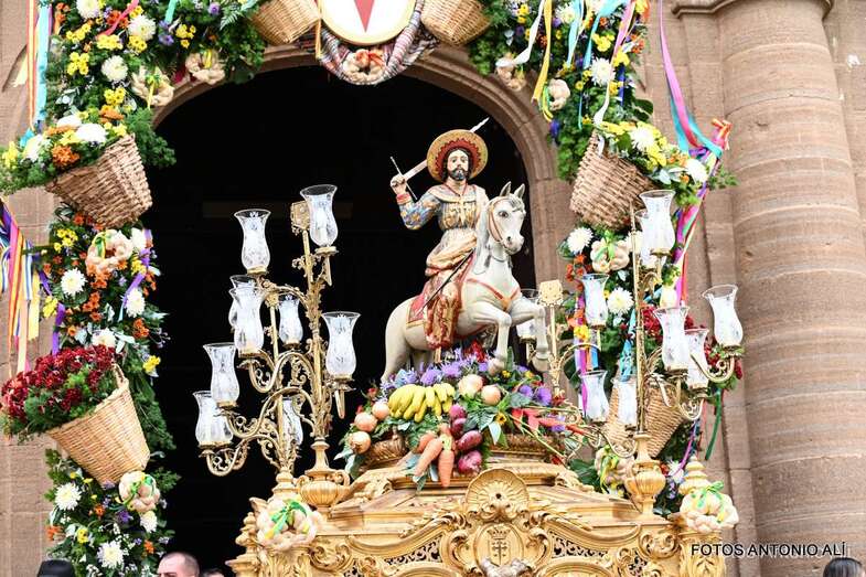 Ante la imagen de Santiago, el alcalde de Gáldar, Teodoro Sosa Monzón, decía que "parece mentira pero estamos nuevamente a los pies de nuestro patrón dos años después, dos años duros y difíciles pero volvemos a que nuestro patrón Santiago siga protegiendo esta ciudad y el norte de Gran Canaria. Y venimos siendo solidarios con un abrazo especial a los hermanos de La Palma que nos acompañan. Y recibiendo a todos los galdenses que vienen con los mejores productos de nuestra tierra, porque eso es lo que hemos heredado de nuestros padres y abuelos, traer la Ofrenda a Santiago de los Caballeros una semana antes"".