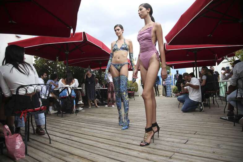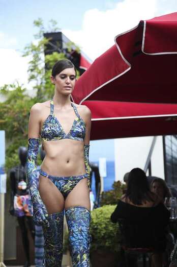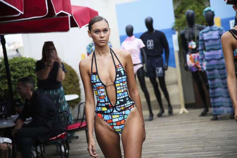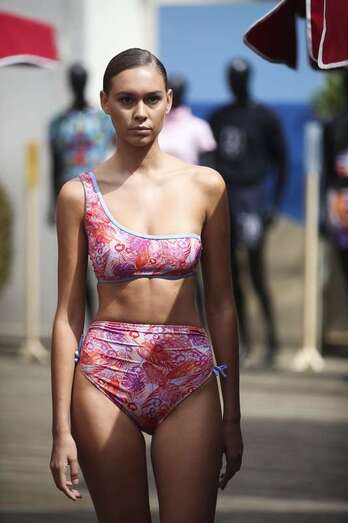Biquinis conjuntados con guantes largos y botas altas, estampados coloridos y bañadores monocromáticos de tonos cálidos han sido algunas de las prendas que han deslumbrado en la pasarela, a la que han asistido representantes de escuelas de moda y profesionales de la industria textil en España.