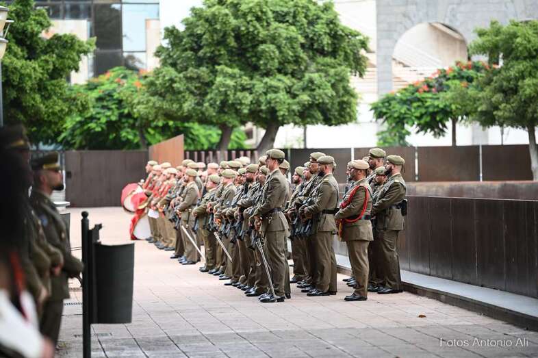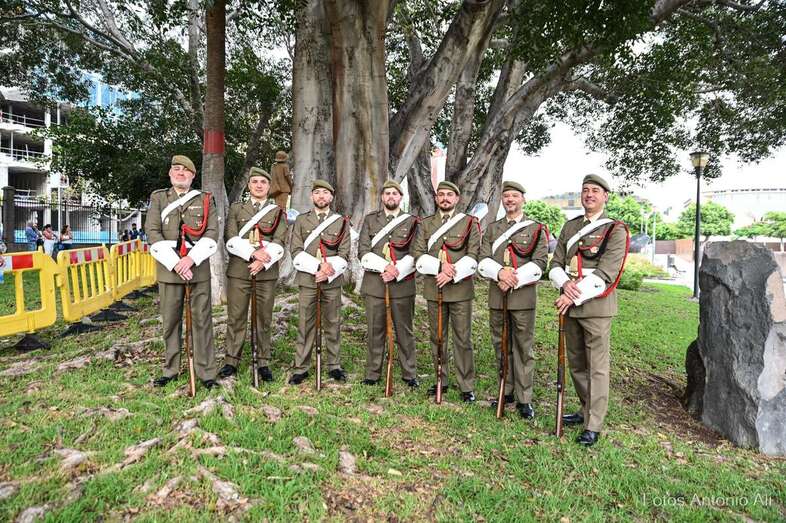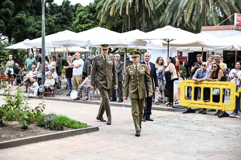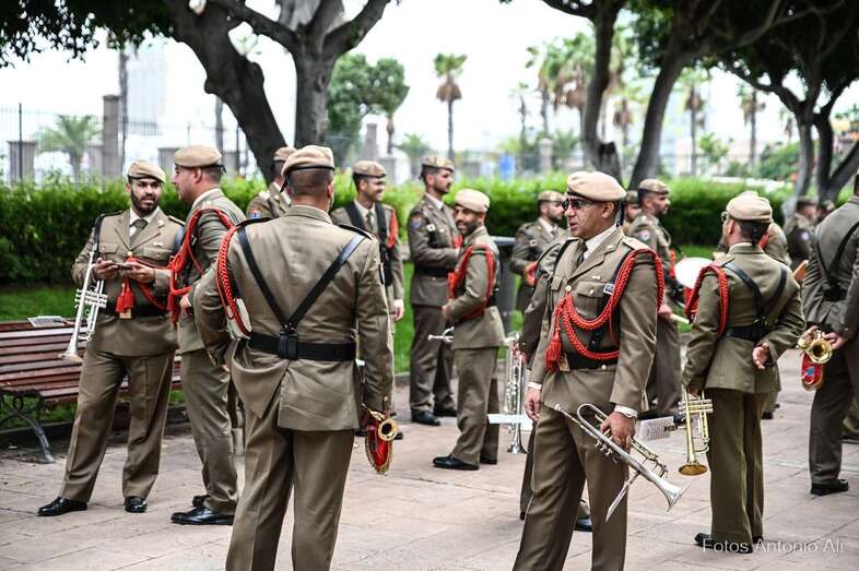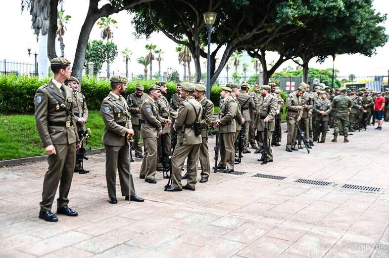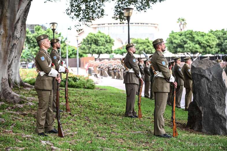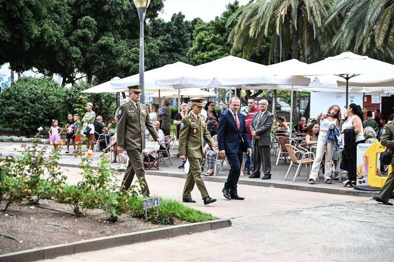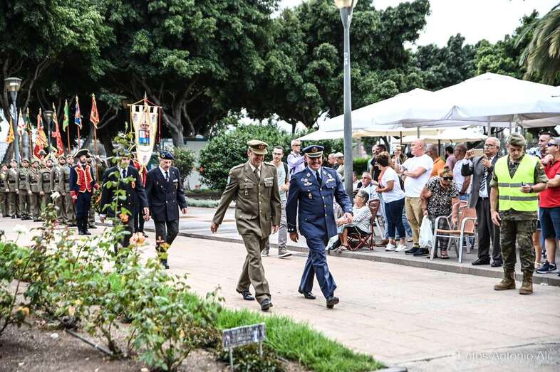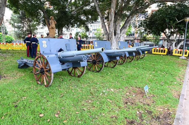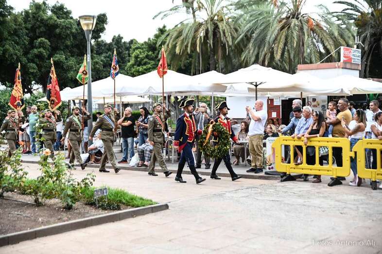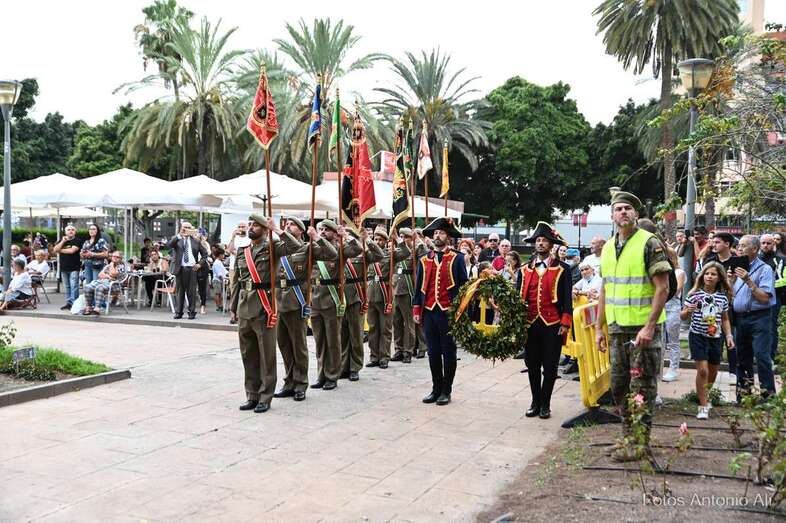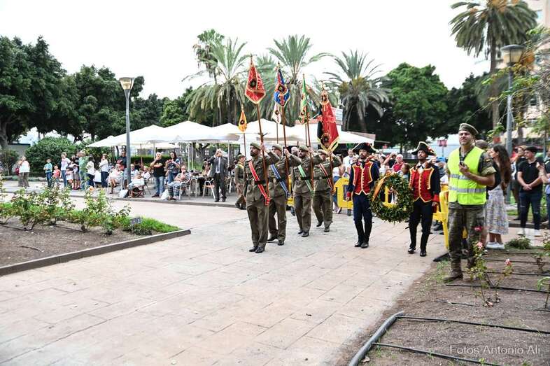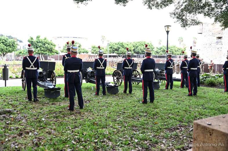 Por su parte, militares del Regimiento de Artillería Antiaérea 94 de La Isleta, acompañados de varios cañones de época, fueron los encargados de protagonizar la parada militar que se organizó en los Jardines de La Luz para celebrar esta efeméride.