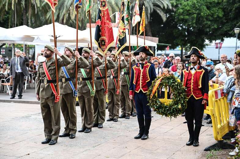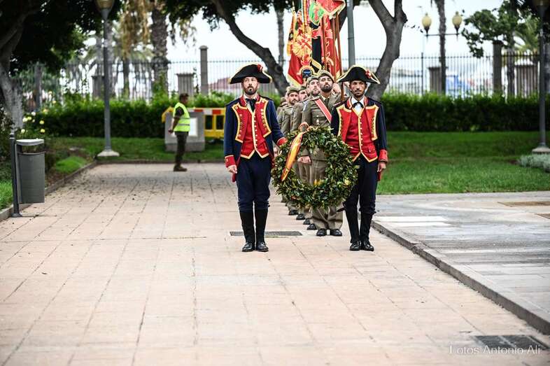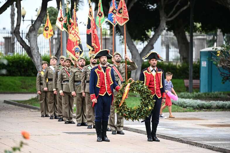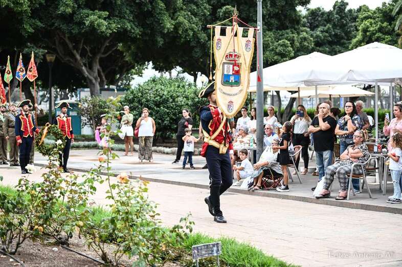 Así, en los Jardines de La Luz, y delante del castillo, ha tenido lugar este acto en el que se rindió homenaje a todos los caídos por la defensa de Gran Canaria de ataques extranjeros, y especialmente de los que murieron en la Batalla de La Naval.