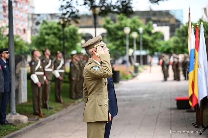 Finalmente, el acto terminó con una ofrenda floral a los caídos por España, a la que siguió una salva disparada por uno de los cañones desplegados en los Jardines de La Luz, y el desfile de una brigada del Regimiento de Artillería Antiaérea 94.