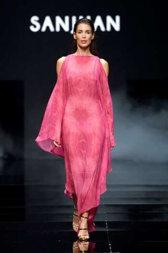 A las 19h San Juan ha puesto en escena su colección inspirada en los colores y las siluetas de la jungla con tejidos transparentes dispuestos en diferentes capas y dibujando texturas orgánicas.