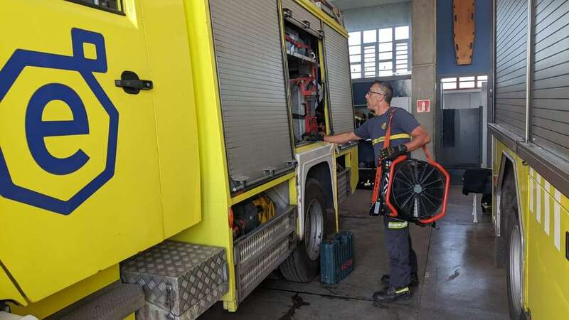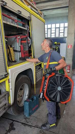 Para afrontar un incendio en un inmueble, es fundamental manipular el humo para liberar las zonas de evacuación, lo que se realiza con potentes ventiladores situados de manera estratégica. A los convencionales de combustión con los que cuenta el ente y que precisan dos bomberos para su transporte, el Consorcio suma ahora tres de batería, más ligeros, versátiles y manejables, y próximamente sumará otros cuatro para que cada parque tenga al menos uno de estos aparatos cuyo coste por unidad es de 5.000 euros, por tanto la inversión suma en este caso a 35.000 euros.