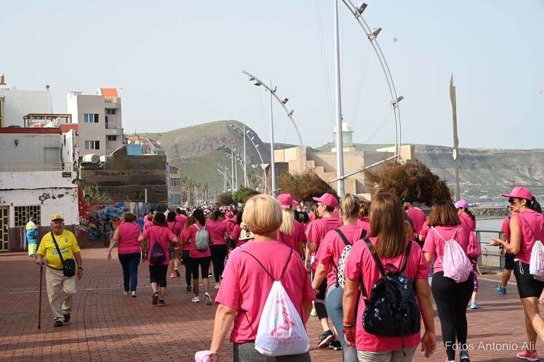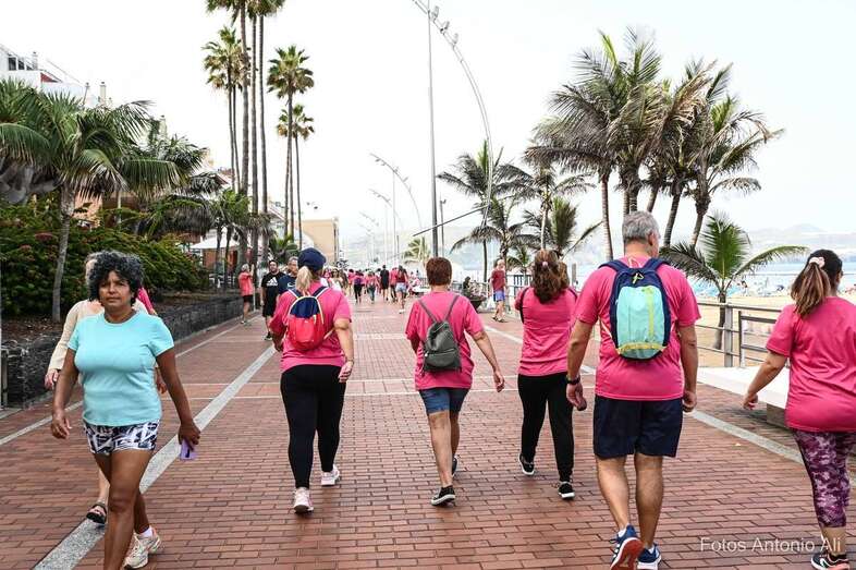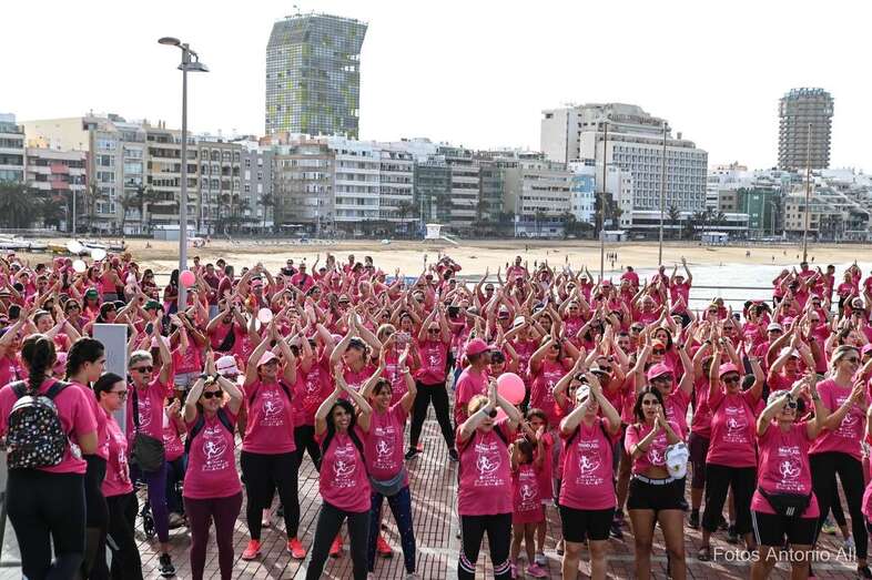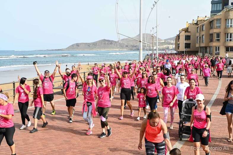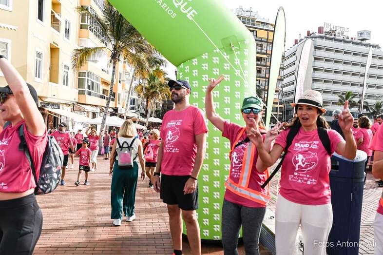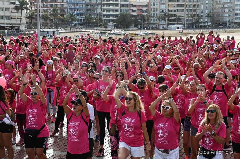 La playa capitalina de Las Canteras acogió este domingo la VII edición de la Carrera y Caminata Solidaria Grand Pink Run, organizada por la Asociación Lucha contra el Cáncer de Mama y Ginecológico (ACCM) y que contó con la participación de decenas de teldenses.