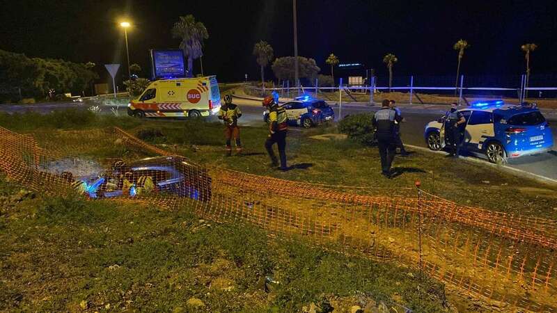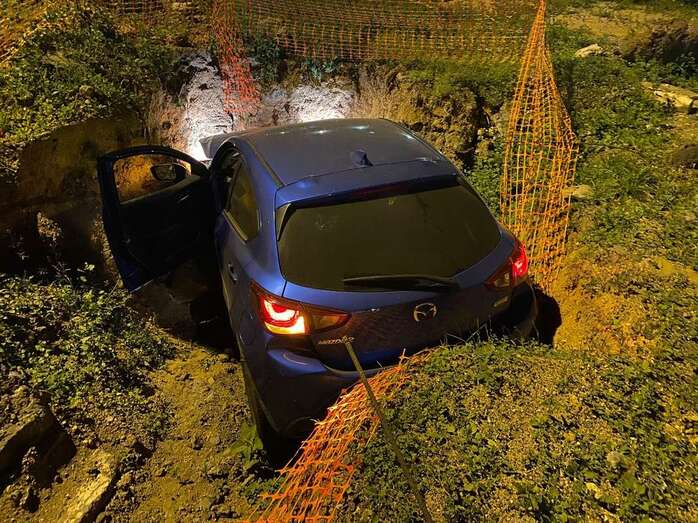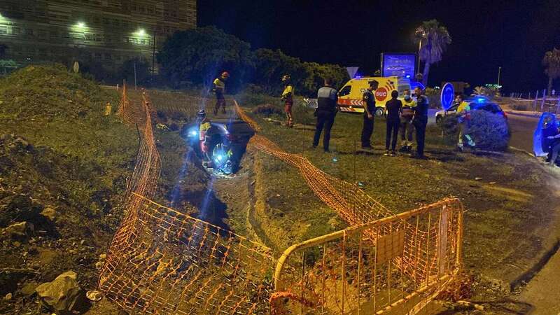 Un vehículo se salió esta madrugada de la vía y acabó en encajado en una zanja en la rotonda de Hoya de la Plata en la capital grancanaria.