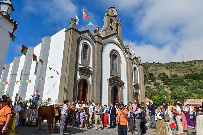 Desde las 10 de la mañana las carretas y carrozas empiezan a colocarse en los puestos de salida, en un lado del pueblo. Poco a poco van llegando las parrandas. Apenas termina la misa canaria en la iglesia, empiezan a sonar los primeros timples y guitarras de las parrandas. No falta el acordeón y el pandero. En una parranda junto a El Mirador la cantante y actriz Tania Gil canta: “Señores no me lo creo, señores ay qué alegría, que después de estos dos años, estamos de romería”. El verseador satauteño José María Dávila, aparece con el timple al hombro y también se incorpora a una parranda como uno más.