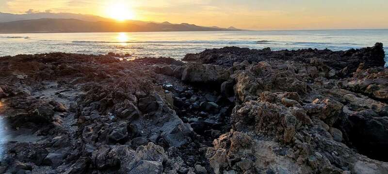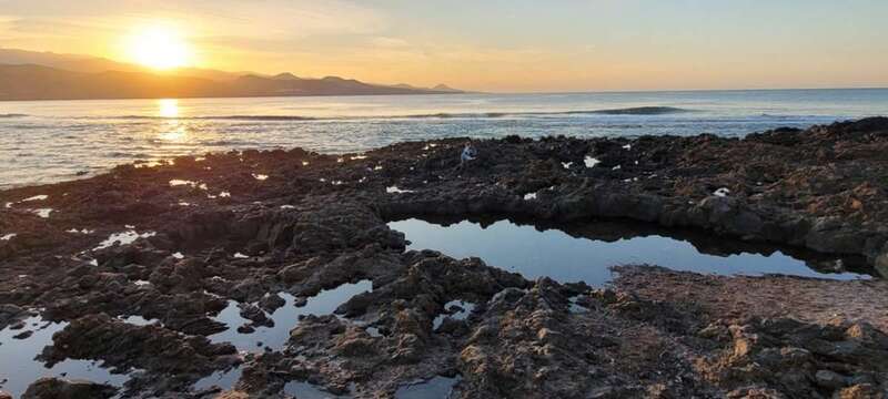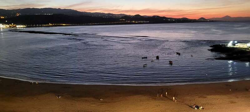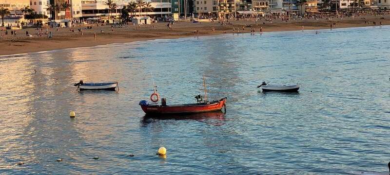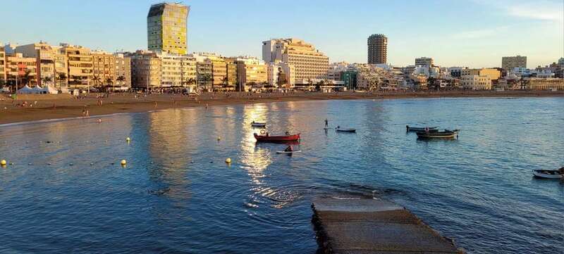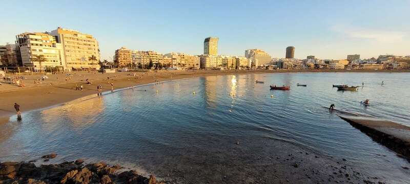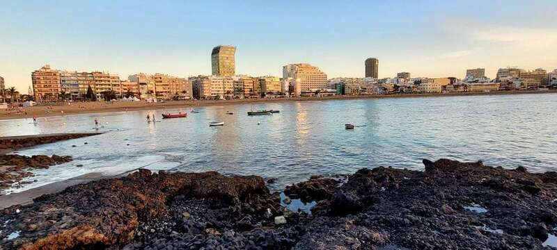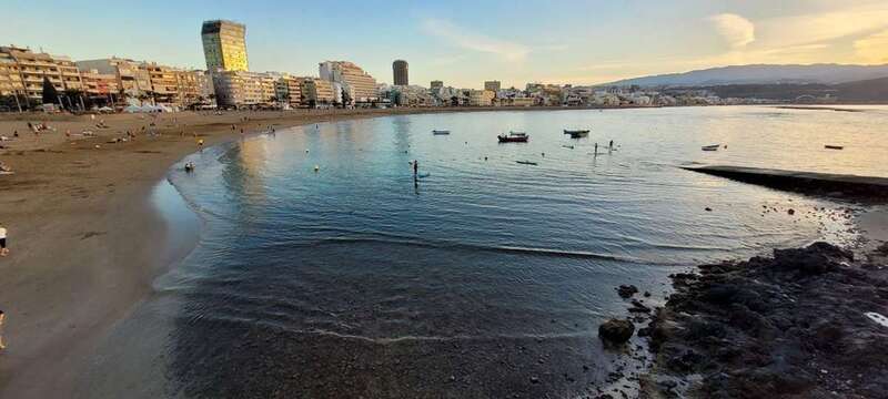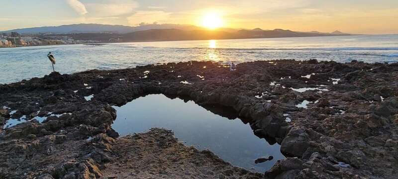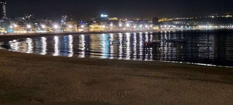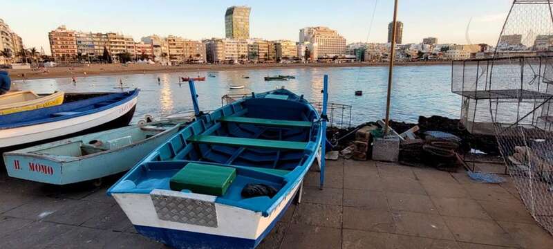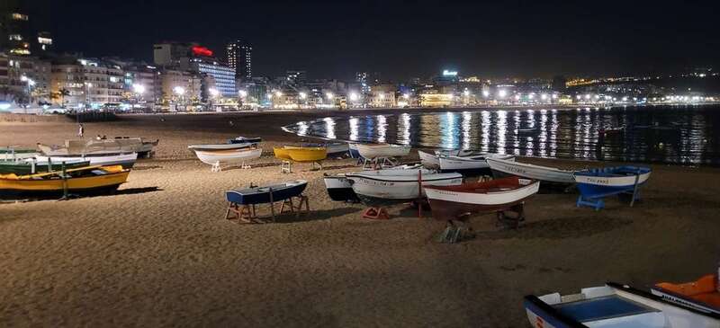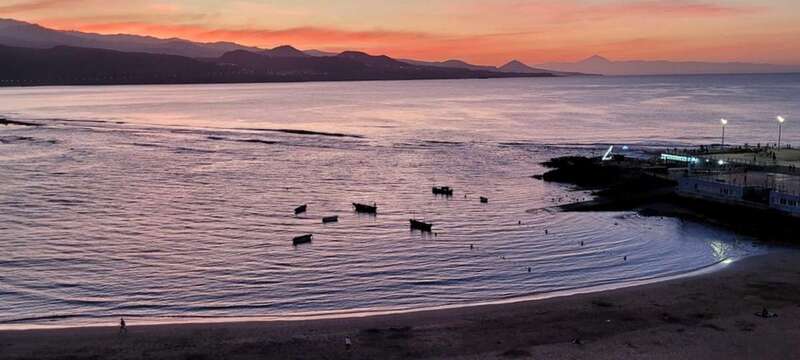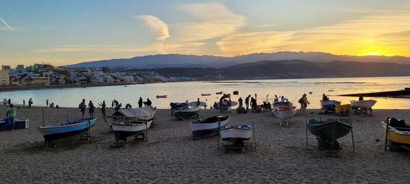 Desde la grandeza que admiramos en la belleza crepuscular hasta la humildad de las solitarias barquillas que, en silencio, custodian sus aventuras marineras, nos regalan y recuerdan la pincelada tradicional de la pesca local en esta zona de Las Canteras, que hoy la ingente corriente de visitantes locales, turistas y animación festiva, toma carácter de pintura llevada de la mano por el gran artista, la propia naturaleza vital, que nos permite gozar de este escenario sin la pretensión de conquistar o descubrir nuevos mundos, sosegados y en calma, ante tal marco sentir lo que nuestra naturaleza insular nos ofrece e inunda el alma.