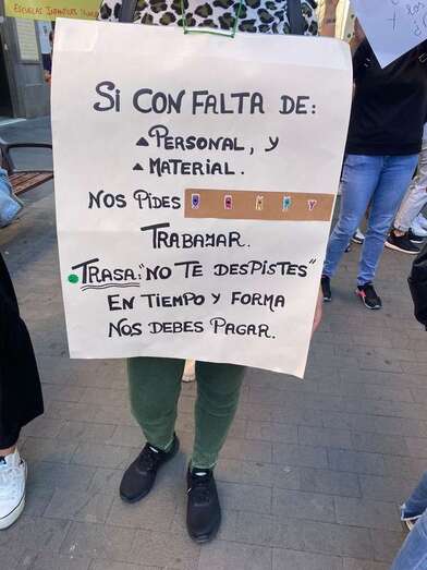 Báez asegura que la explicación que les dan desde la compañía para la que trabajan es que, como no hay un contrato, tienen problemas para que el banco les adelante las nóminas y los gastos. “¿Qué pasa? Que eso no es problema de los trabajadores. Porque nosotros estamos cumpliendo con creces nuestro trabajo”, apostilla. “Cuando a nosotras nos llegan los gastos nuestros como las hipotecas, no le podemos decir al banco que la empresa no nos ha pagado”, indica.