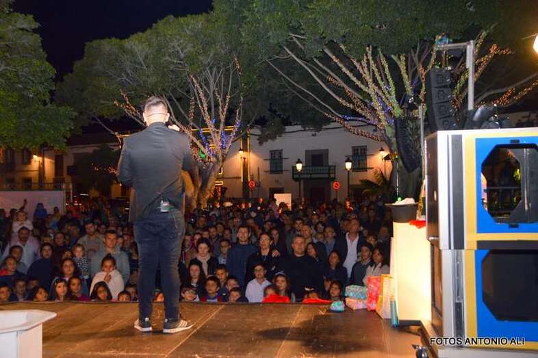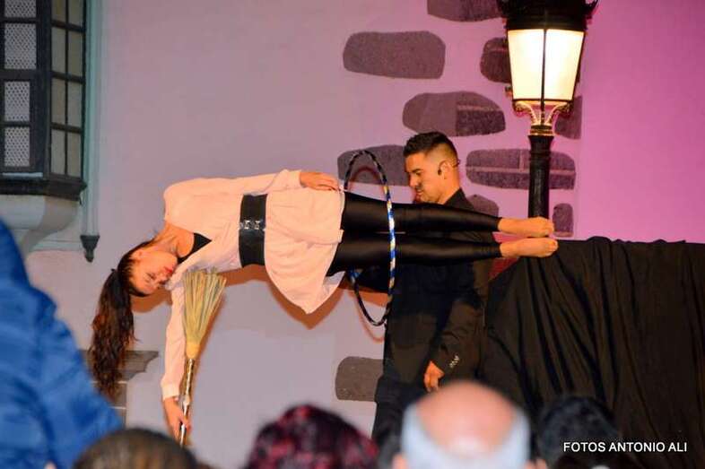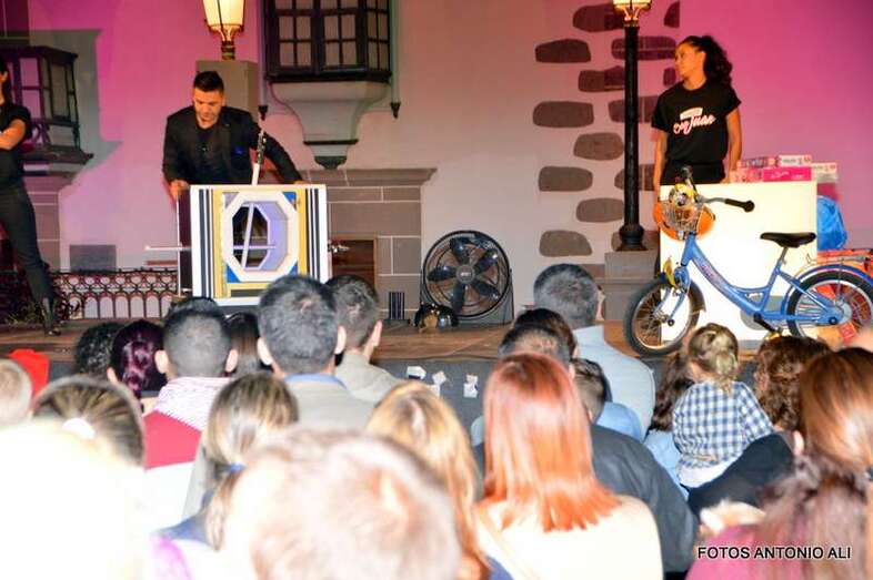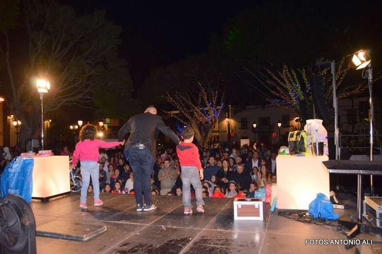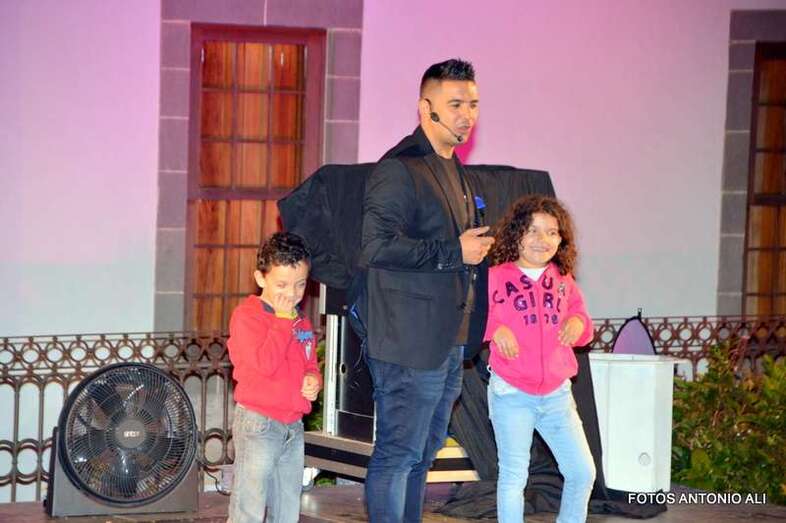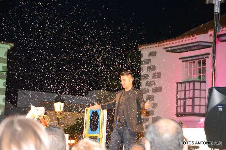 El Mago Aday y sus ayudantes sorprendieron a los visitantes que se acercaron a las calles de San Juan con sus trucos de magia y realizaron un espectáculo a partir de las 19.00 horas en el escenario instalado en el recinto público.