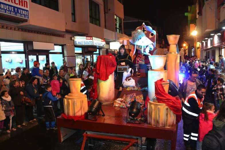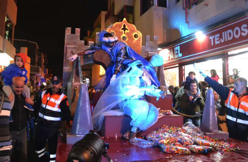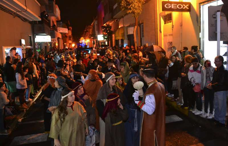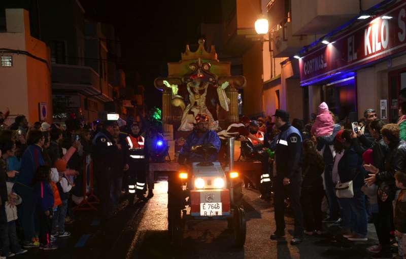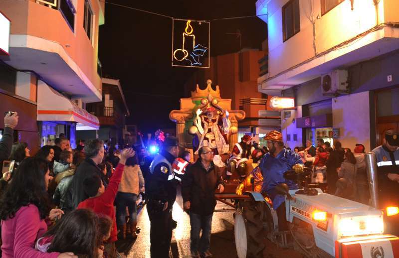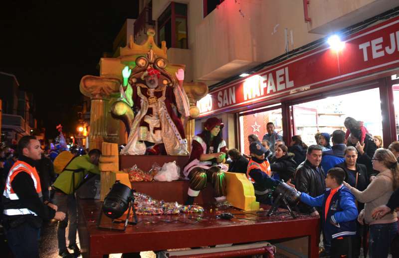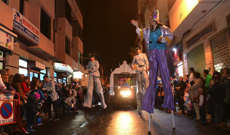 Telde.- Ni la lluvia frenó hoy en Telde a Melchor, Gaspar y Baltasar. Los tres Magos de Oriente desafiaron a las inclemencias meteorológicas y recorrieron el casco de la ciudad en una gran comitiva que se puso en marcha a las 18.49 horas, con un retraso de 20 minutos, desde la Casa de la Juventud (antiguo mercado municipal), y en la que participaron 7 carrozas y 240 figurantes.