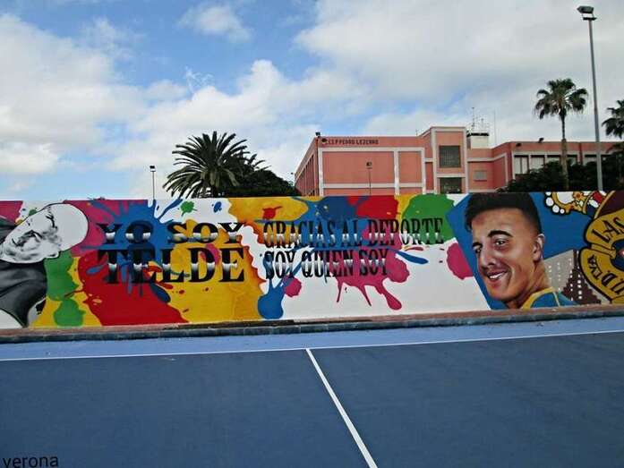 Telde.- Un muro se puede convertir en  ancla identitaria de un pueblo y en espejo donde proyectar su esperanza en un futuro mejor. Esa es la idea que inspiró al edil de Vías y Obras de Telde, Alejandro Ramos, vecino además de Jinámar, para impulsar la creación de un gigantesco mural en la llamada urbanización de Eucaliptos I, entre la cancha deportiva y el colegio Pedro Lezcano.