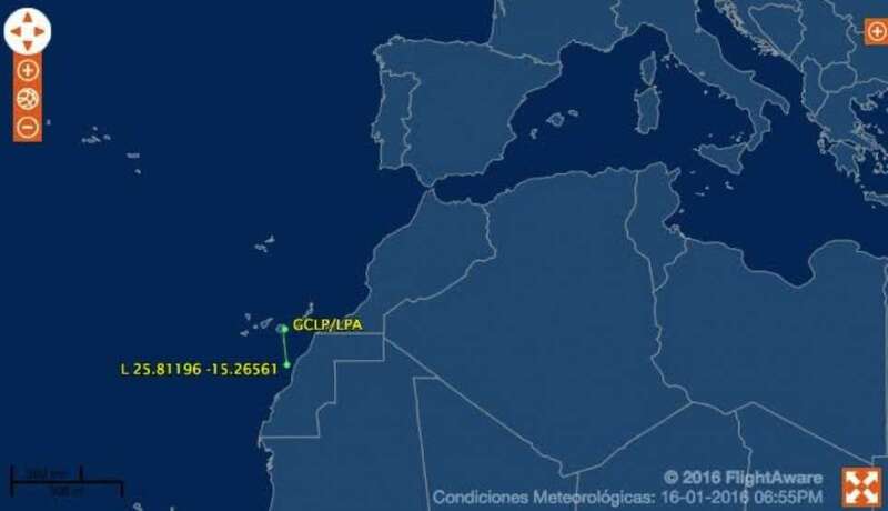 El avión, con el identificativo DUB3, llegó pasadas las 18.11 horas a la isla y con un plan de vuelo confidencial, del que tan solo se conoce una de sus últimas posiciones antes contactar con Canarias: el noroeste de Mauritania.
