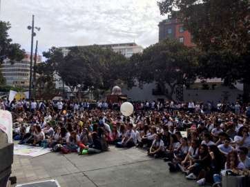 La concejala de Solidaridad, Marta Hernández, acudió en representación de la Corporación teldense junto a los 330 estudiantes y docentes procedentes de siete centros de Primaria y Secundaria del municipio que recorrieron el tramo que une la Alameda de Colón con el parque de San Telmo, a través de la calle Triana, donde se leyeron manifiestos en defensa de la paz y de rechazo frontal a cualquier tipo de enfrentamiento.