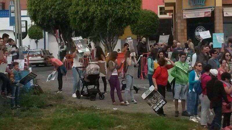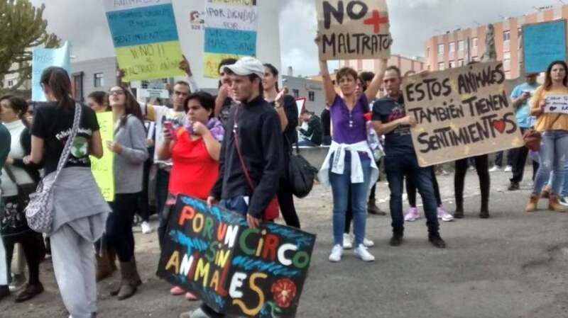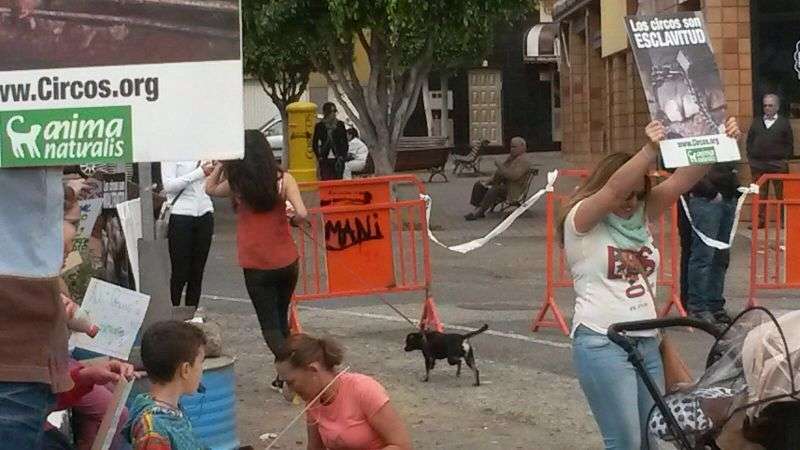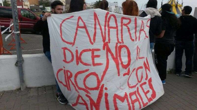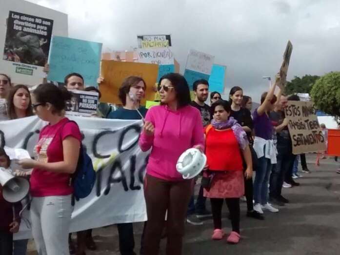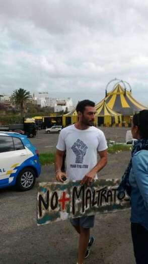 A partir de las 10.30 horas comenzaron a llegar a personas al lugar de la protesta con pancartas y cartelones con mensajes abiertamente críticos con el uso de animales en los espectáculos circenses como No al maltrato animal, Los animales tienen sentimientos, Canarias libre de circos con animales o Los circos son esclavitud, entre otros.