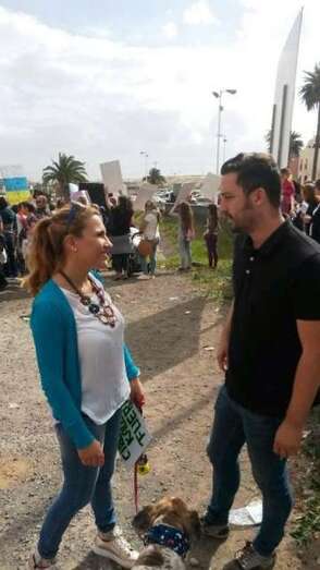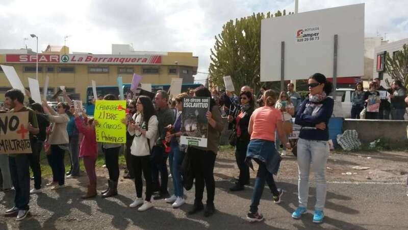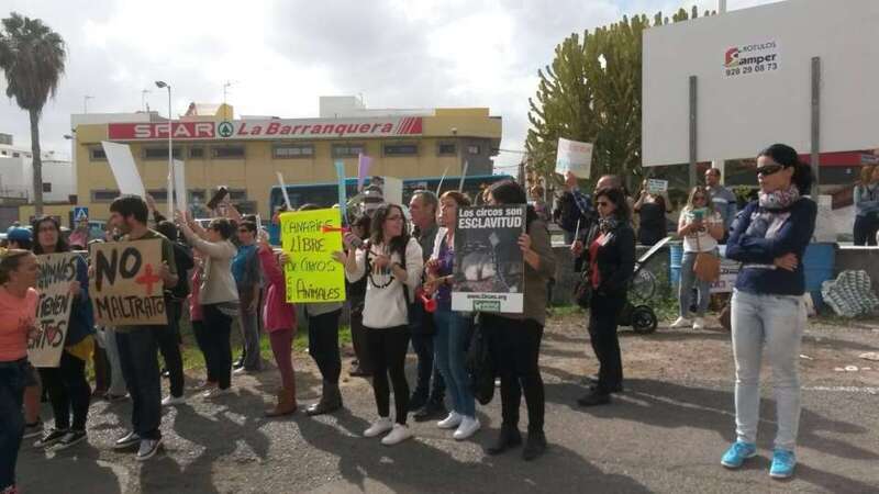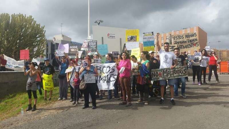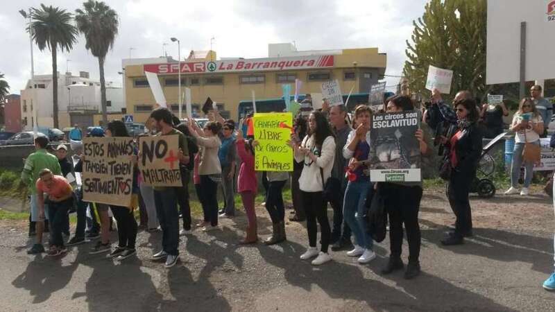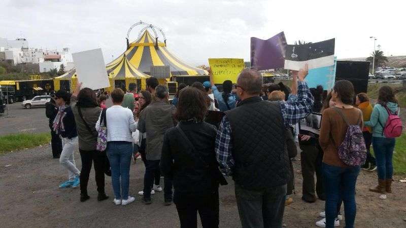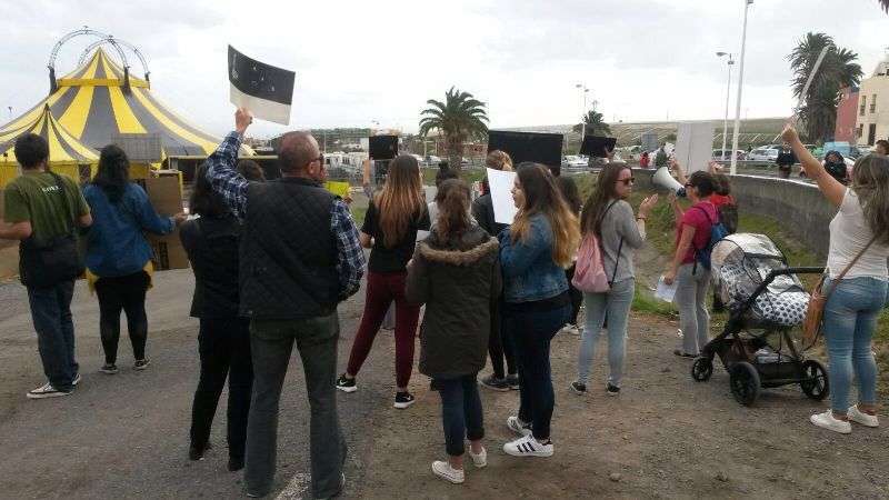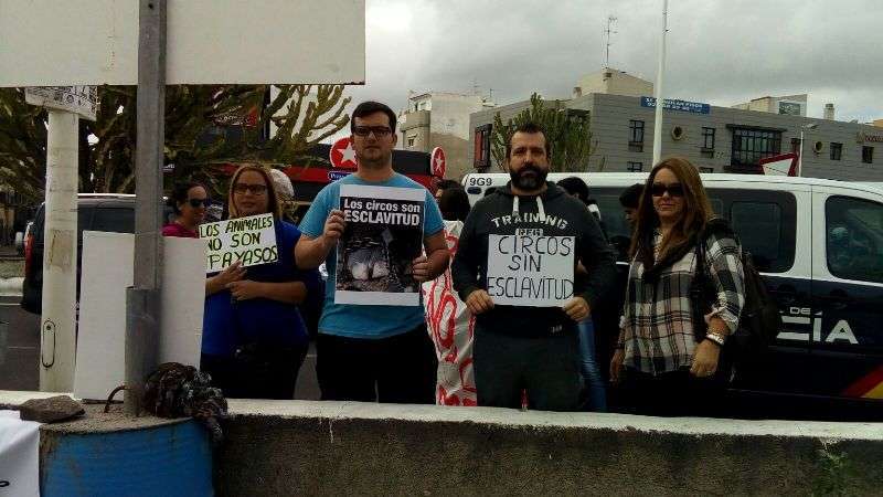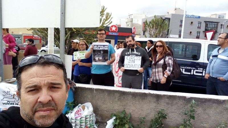 Entre los asistentes se encuentran los concejales de la oposición, Juan Antonio Peña (Unidos por Gran Canaria), y Esther González y Guillermo Eugenio (Se Puede Ganar), conocidas caras del movimiento animalista de Canarias, agentes sociales y dirigentes de algunas formaciones políticas. En el lugar de la protesta existen una discreta presencia de agentes de la Policía Nacional y Local, que impidieron a los manifestantes acercarse a la entrada al circo, que celebraba a la misma hora una función.
