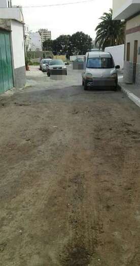 Dos pequeñas vías situadas en la trasera de la plaza de Jinámar, en las proximidades de la oficina de Correos y de la subida hacia Lomo Blanco, que permanecen totalmente cubiertas de tierra y barro seco, además de salpicadas por los baches, y que se han convertido en auténtico calvario para los conductores y viandantes que transitan por ellas.