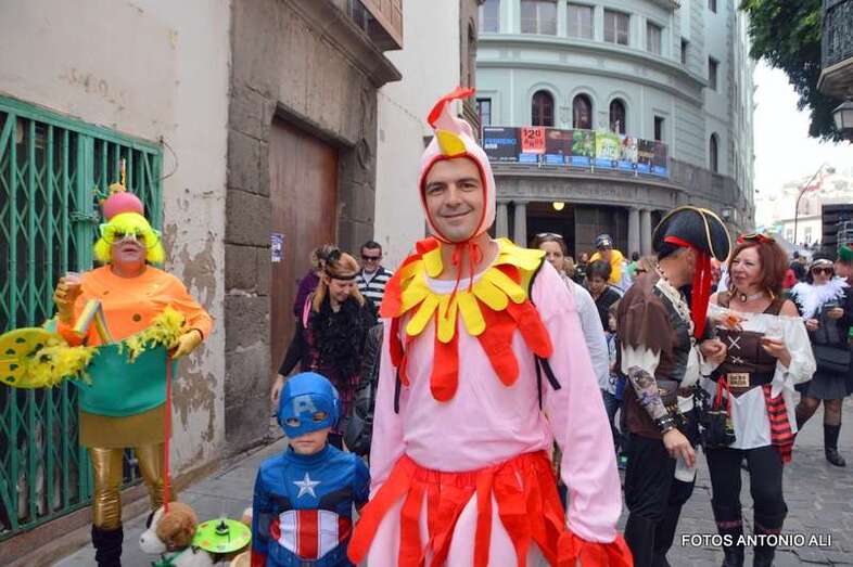 Las calles Obispo Codina, Calvo Sotelo, Pelota y Mendizábal y la plaza Mesa de León se llenaron de mascaritas en torno a la quinta edición de esta fiesta, celebrada por el Ayuntamiento capitalino en colaboración con la Asociación Vegueta de Ocio y Restauración (AVOR).