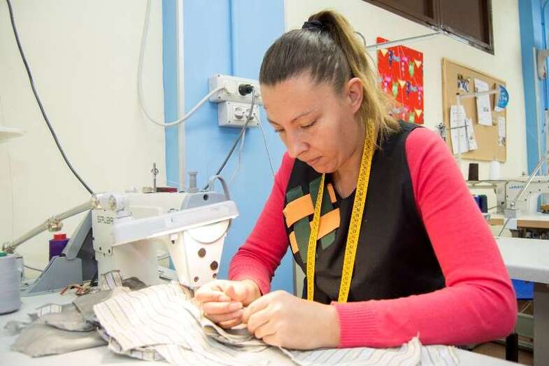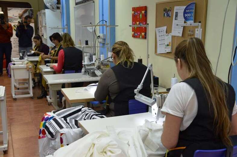 Cinco mujeres de 20 a 40 años de edad trabajan a media jornada desde la apertura del taller, en julio de 2015, donde además reciben asesoramiento personal para mejorar sus condiciones de acceso al empleo.