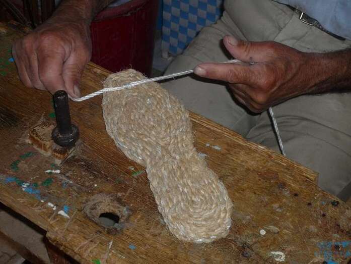 La elaboración de una alpargata para adulto precisaba de unos 14 metros de trenza de pita que se elaborada con cuatro cabestros, cada uno de ellos formado por dos cordeles, labor que requería hora y media de trabajo manual.