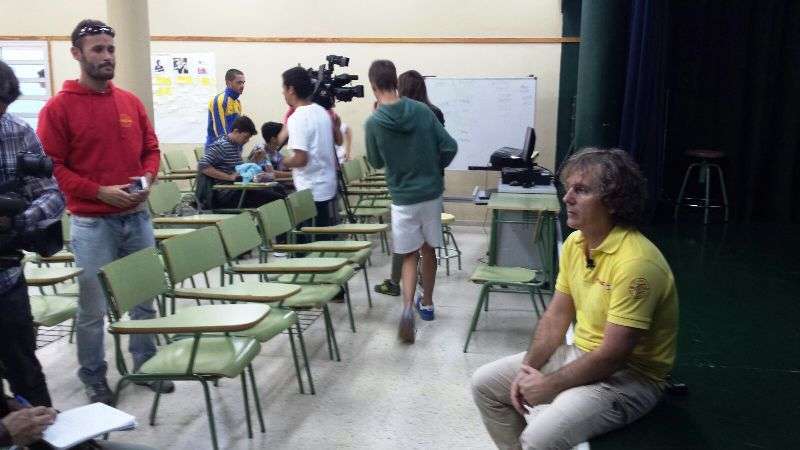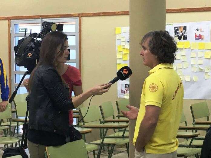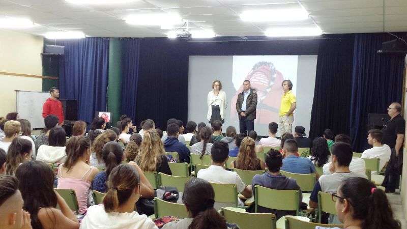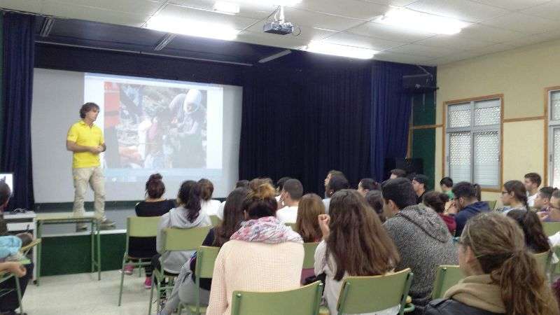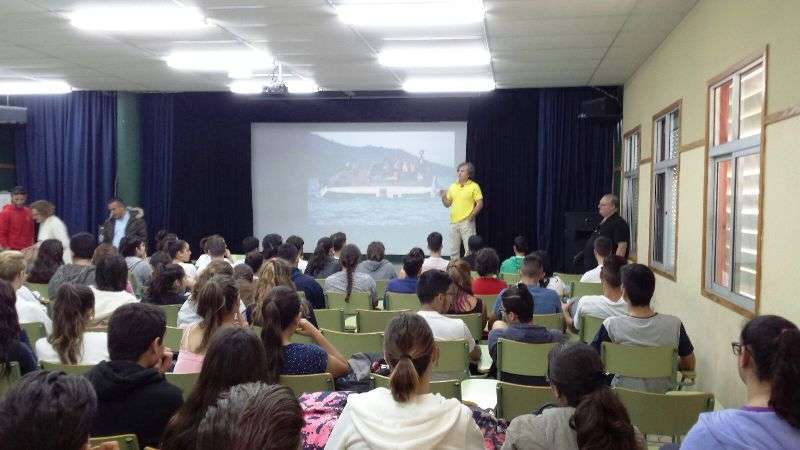 Telde.- Un gran interés despertó la charla que ofreció este viernes José Luis Esmoris Pérez a alumnos del IES José Frugoni Pérez-La Rocha sobre las labores de ayuda que voluntarios de la empresa Proactiva, concesionaria del servicio de salvamento y socorrismo en las playas de Telde, han prestado en Lesbos a los refugiados sirios que llegan por mar a esta isla griega. TA ofrece imágenes.