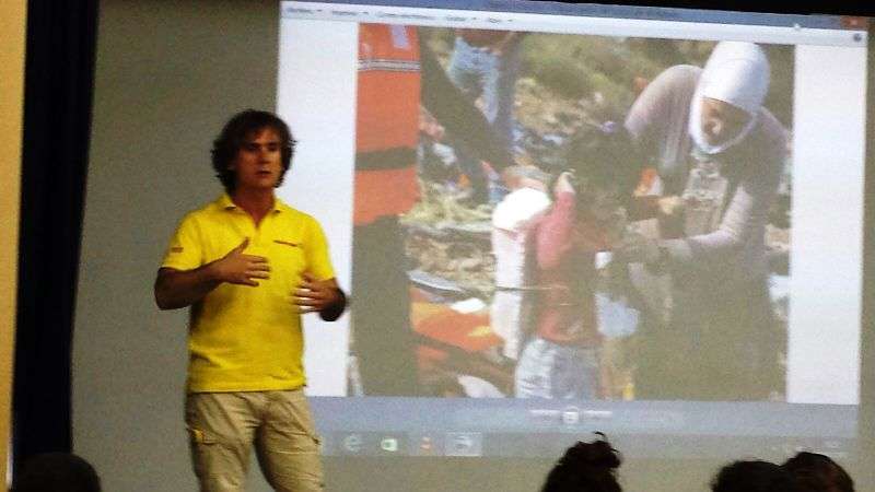 Los estudiantes conocieron de primera mano algunas de las vivencias de este grupo de voluntarios en Lesbos, mientras ayudan a los refugiados que intentan llegar a la costa en unas embarcaciones muy precarias y con las que el riesgo de morir es muy elevado.