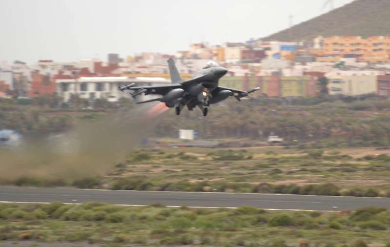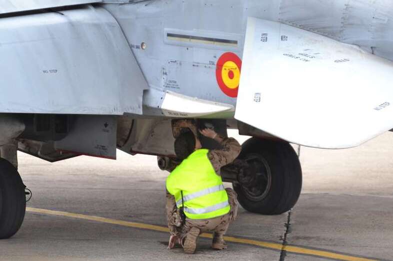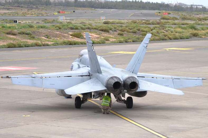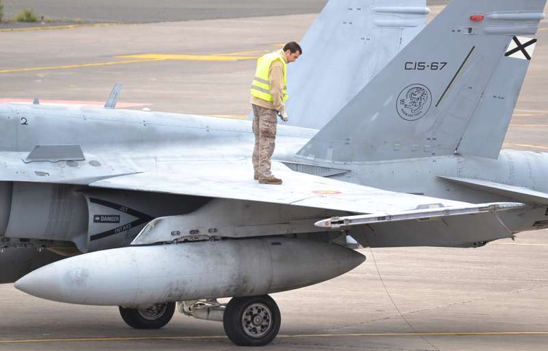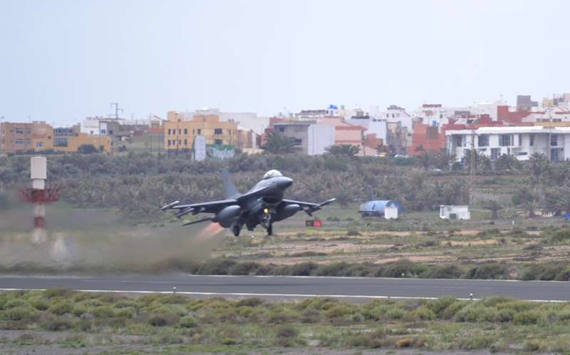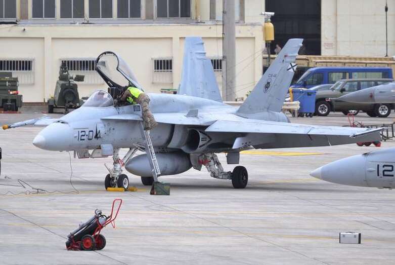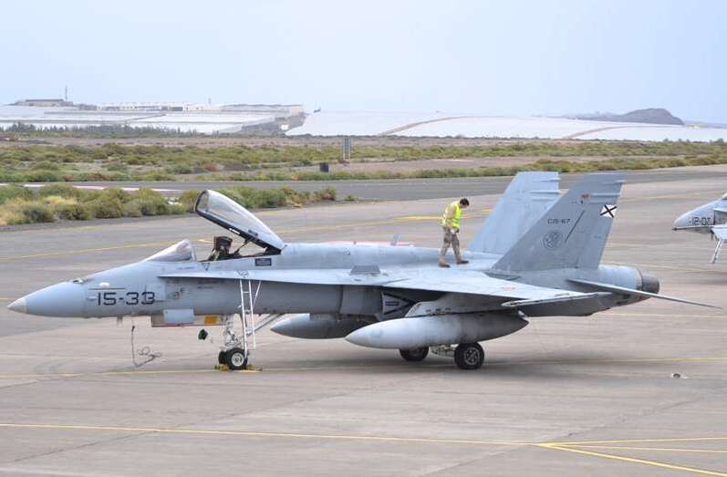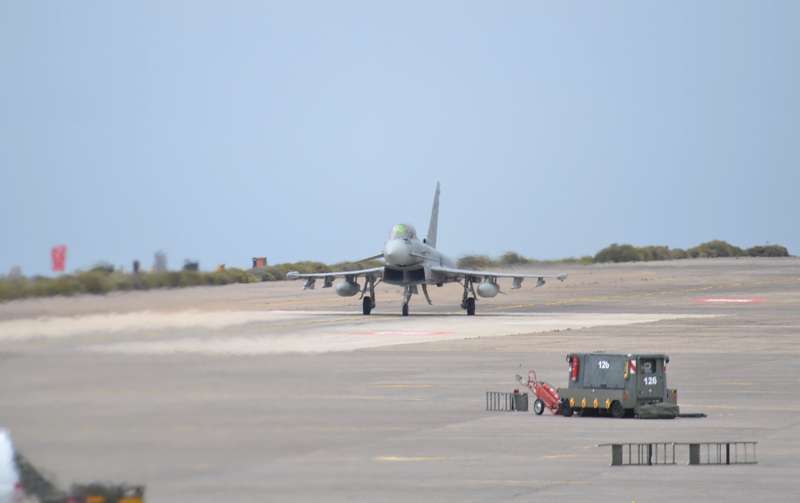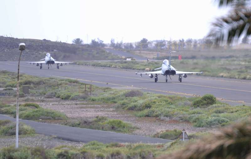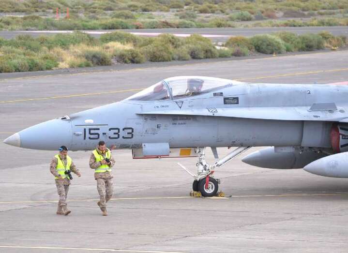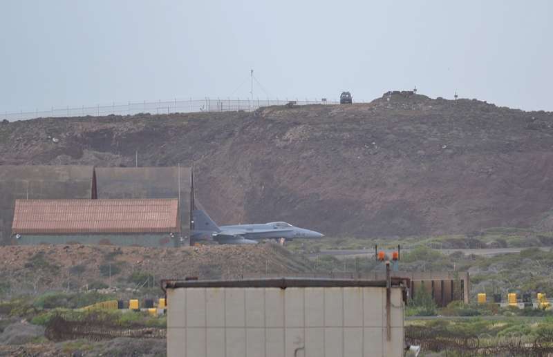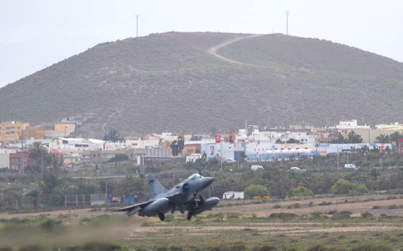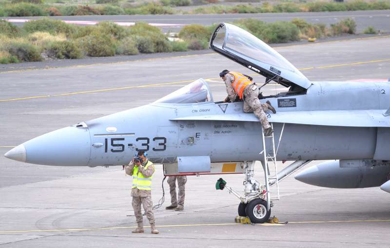 El estrepitoso rugir de los motores, los continuos despegues y aterrizajes, y el ajetreo de mecánicos y pilotos que rondan la plataforma militar de Gando delatan la frenética actividad que estos días se vive en la Base, que junto al aeródromo de Lanzarote hace de centro de operaciones de estos ejercicios.