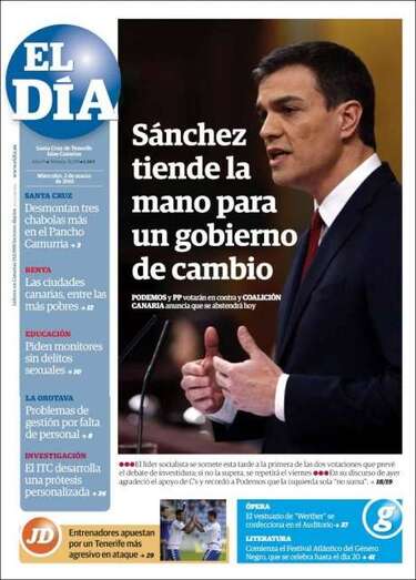 Telde.- TELDECTUALIDAD ofrece a sus lectores las portadas de las ediciones de este miércoles 2 de marzo de 2016 de los principales periódicos del Archipiélago y de España de información general, económica y deportiva.