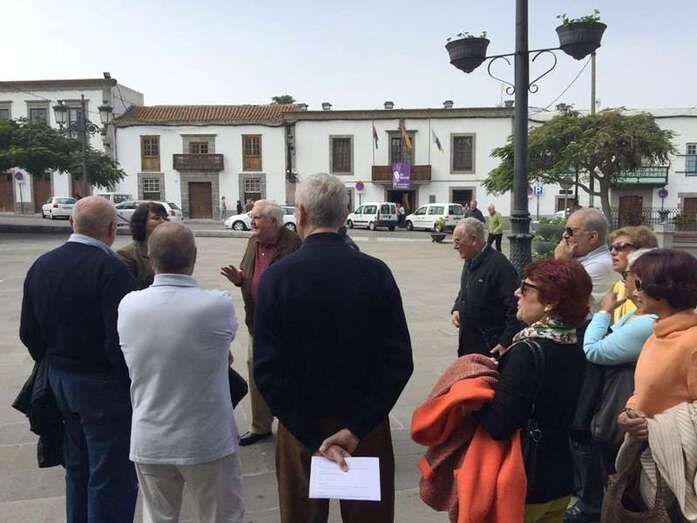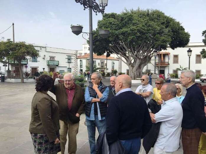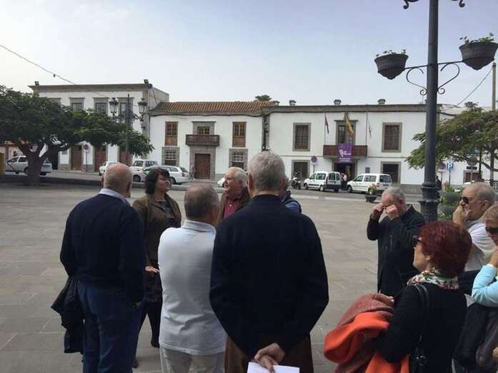 Telde.- Un grupo de veteranos trabajadores de la compañía Iberia visitó este miércoles el casco histórico del municipio guiado por la técnica de la Concejalía de Turismo.La responsable política del área, Celeste López, fue la encargada de recibir a los visitantes y darles la bienvenida en la plaza de San Juan, donde les hizo un pequeño esbozo de cómo Telde creció alrededor de este enclave y las peculiaridades del entramado de calles y callejones que iban a conocer.