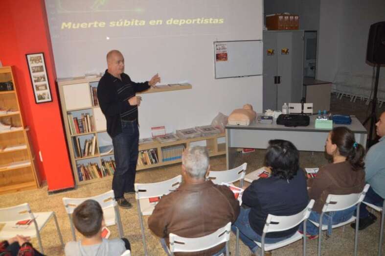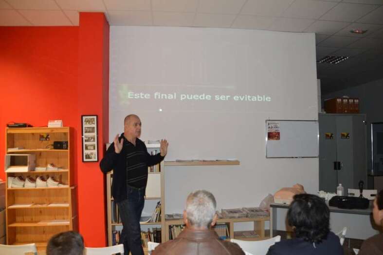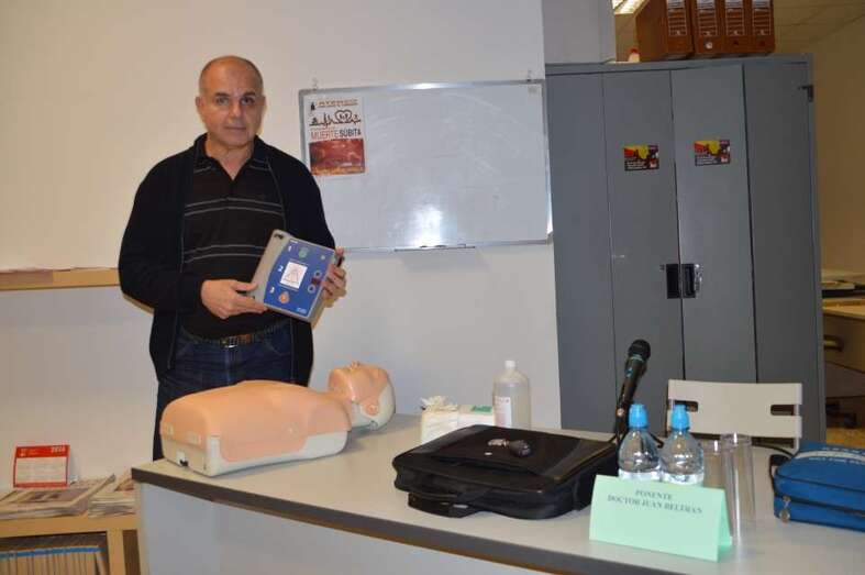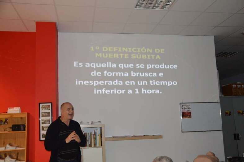 Enseñó también a los asistentes a hacer uso del desfibrilador. Todo ello en una ponencia de una hora de duración, a la que siguió un debate en el que se visionaron 10 videos de casos reales muy ilustrativos.
