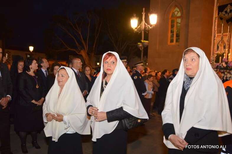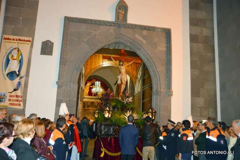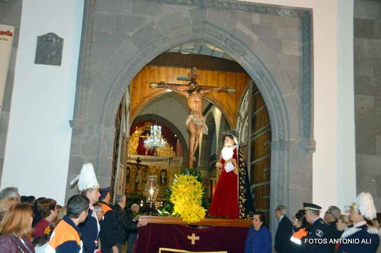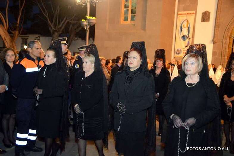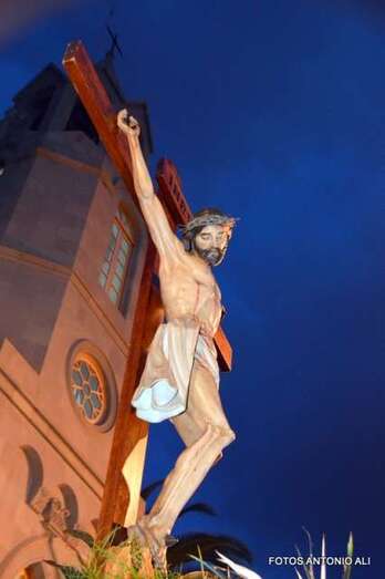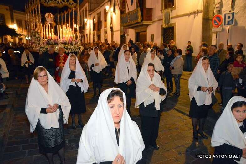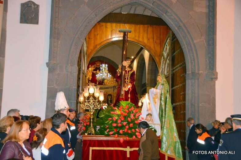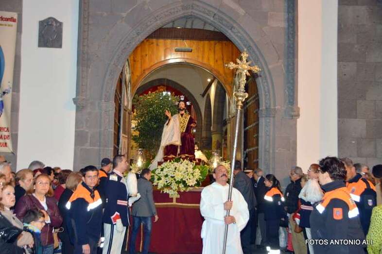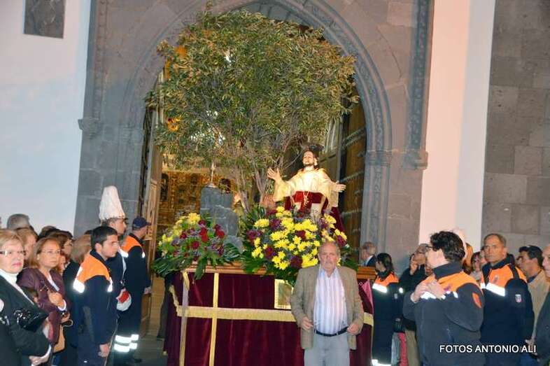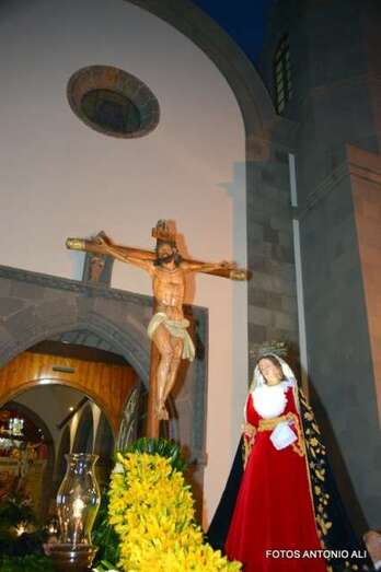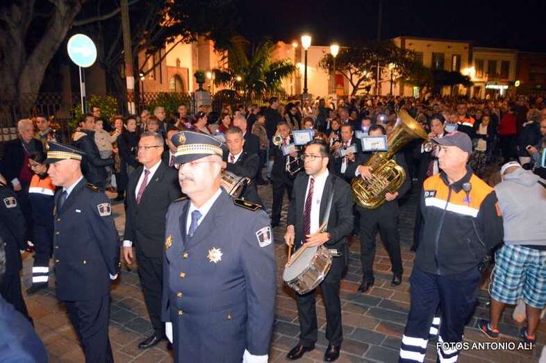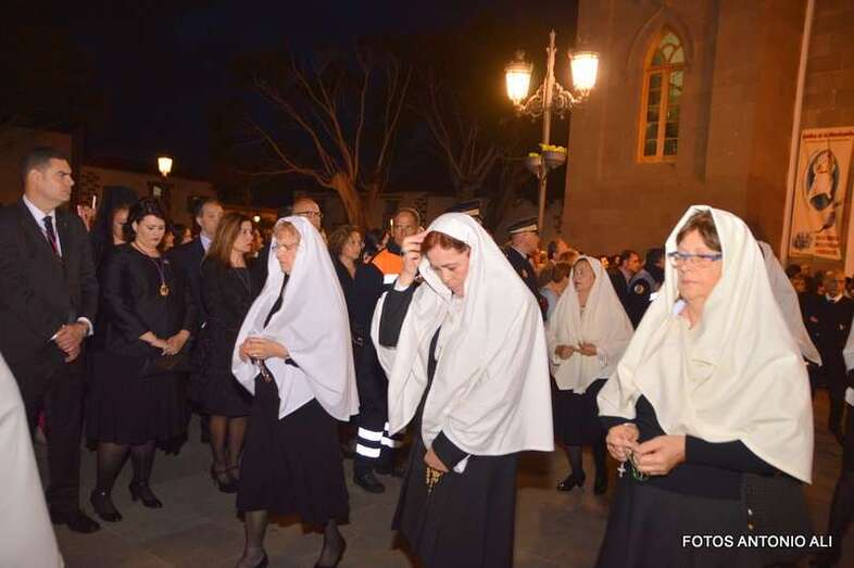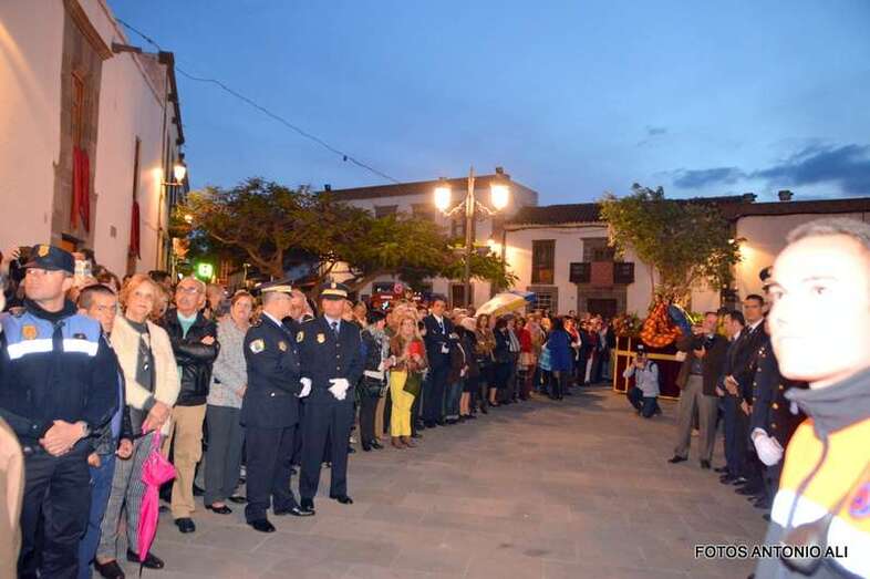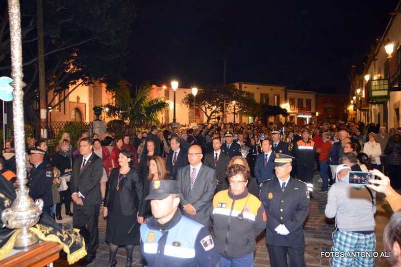 Telde.- La magna procesión de la Semana Santa de Telde recorrió esta tarde-noche las calles del núcleo histórico de San Juan. Al filo de las 19.15 horas, el primero de los ocho pasos que participaron en el desfile religioso abandonaba la Basílica Menor e iniciaba su discurrir entre el fervor y recogimiento de los cientos de asistentes, menos que otros años, que observaban el paso de la comitiva, la cual también contó con una representación de autoridades municipales.