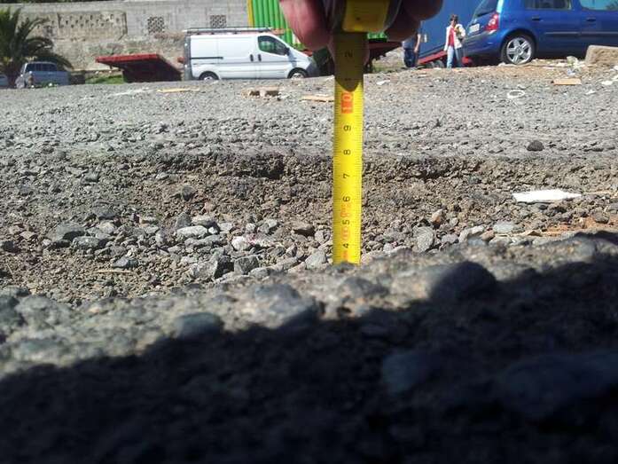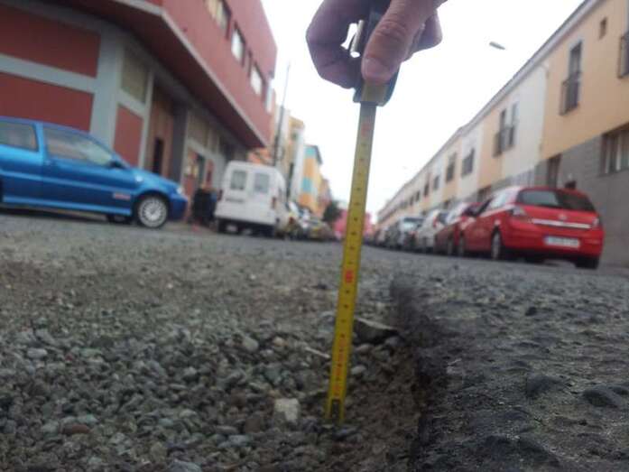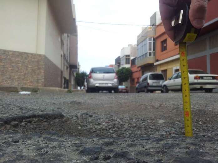 Telde.- El mal estado de la red viaria sigue suscitando quejas vecinales. Esta vez son los vecinos de El Hornillo los que denuncian públicamente el mal estado de la capa de asfalto en calles como la bautizada como Sagrario, donde, sostienen, los baches alcanzan los siete centímetros de profundidad.