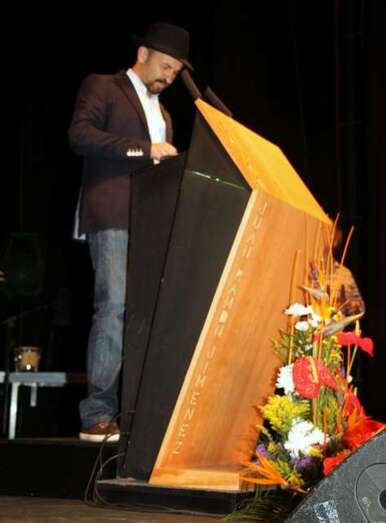 Momento de la intervención de Miguel Vega, presidente de Tyldet, colectivo distinguido (Foto Jesús Ruiz Mesa) Momento de la intervención de Miguel Vega, presidente de Tyldet, colectivo distinguido (Foto Jesús Ruiz Mesa)