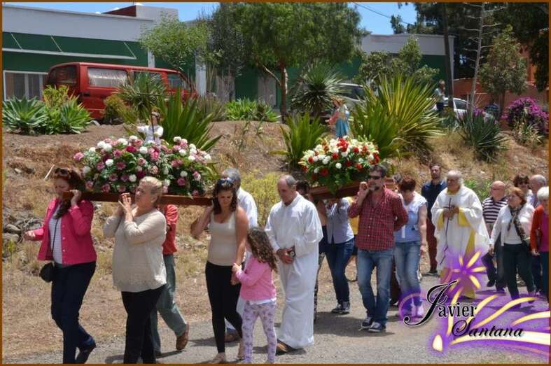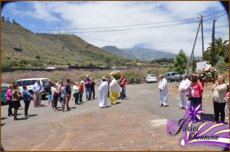 Los actos religiosos comenzaron con una misa oficiada por el párroco de medianías y cumbre, Fernando Báez, quien tuvo emotivas palabras hacia la festividad que celebra este domingo la Iglesia y el barrio, el Corpus Christi (cuerpo y sangre de Cristo).