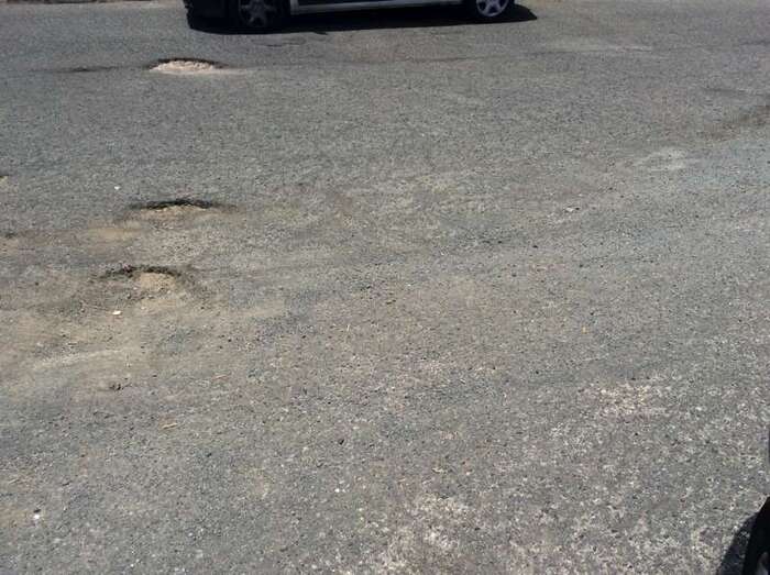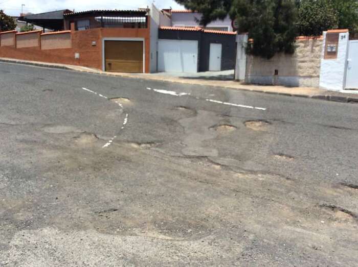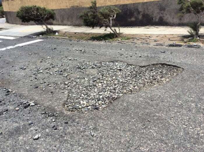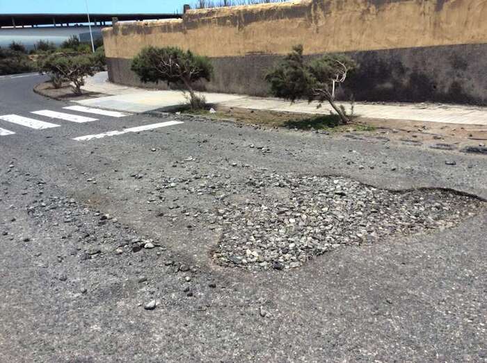 preside la carretera que comunica Taliarte con el barrio de Playa del Hombre. Un agujero de dimensiones considerables y cubierto por peligrosas piedras sueltas que bien podría utilizarse como foso para las competiciones de atletismo en los próximos Juegos Olímpicos de Río 2016. Pero, por desgracia, no es el único.