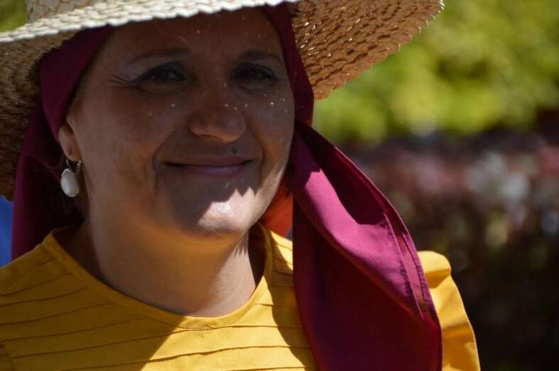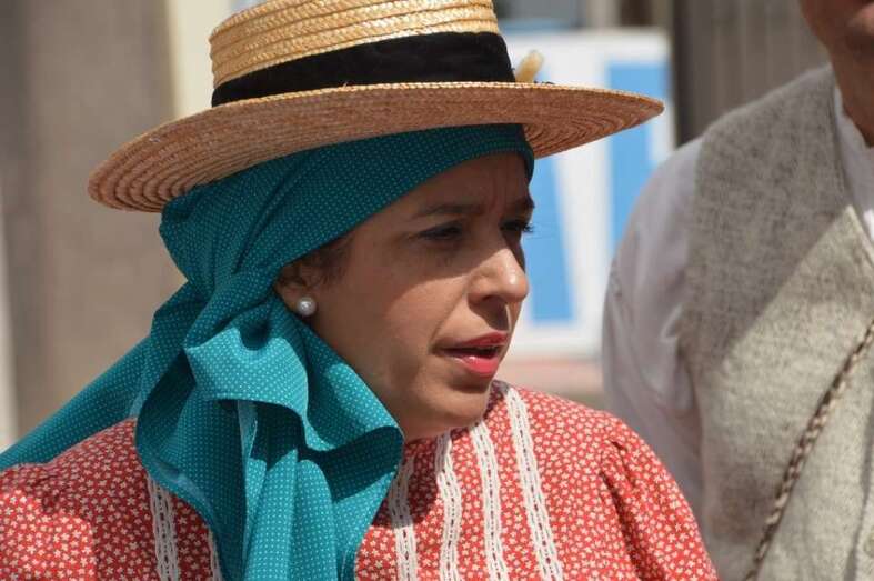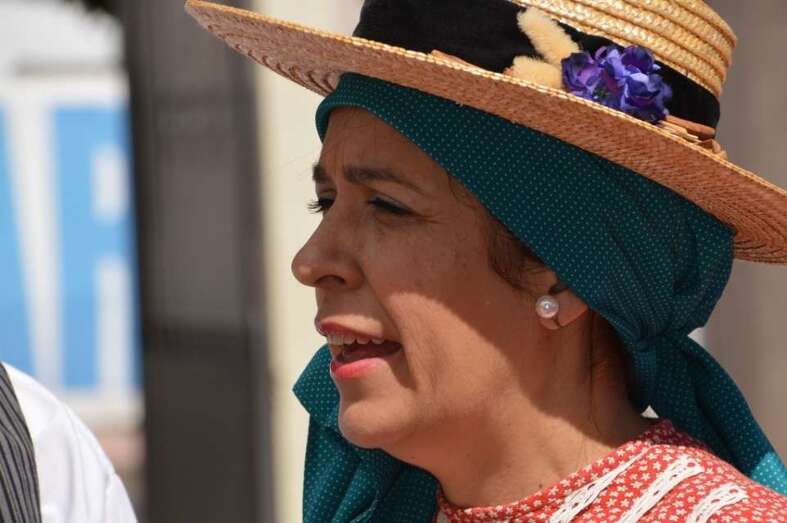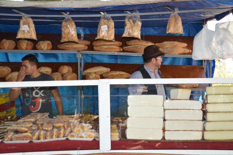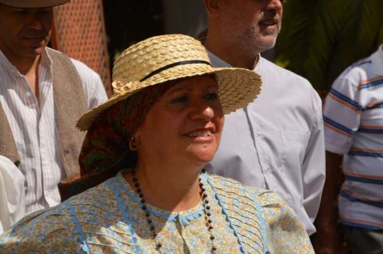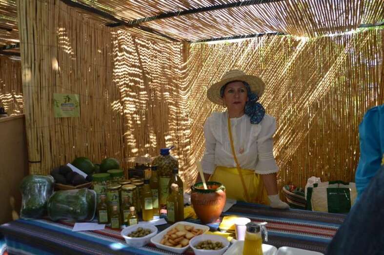 (Comitiva municipal con la alcaldesa al frente, muestra de artesanía y de gastronomía, descamisada, etcétera).