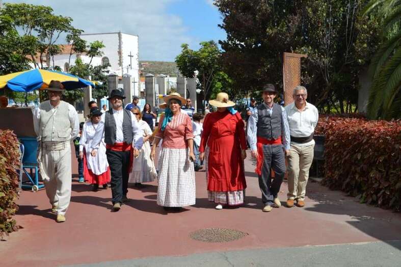 Sin duda, una de las mayores atracciones de la celebración fue la representación, con todo lujo de detalles, de una descamisada de piñas y la elaboración de cochafisco por parte de un grupo de usuarios y monitores de la Escuela Municipal de Folclore perfectamente ataviados para la ocasión. Desde el desgrane a mano hasta el proceso de tostado. Por faltar no faltaba ni el típico zurrón para el gofio.