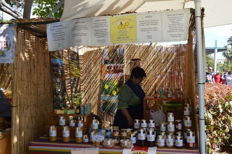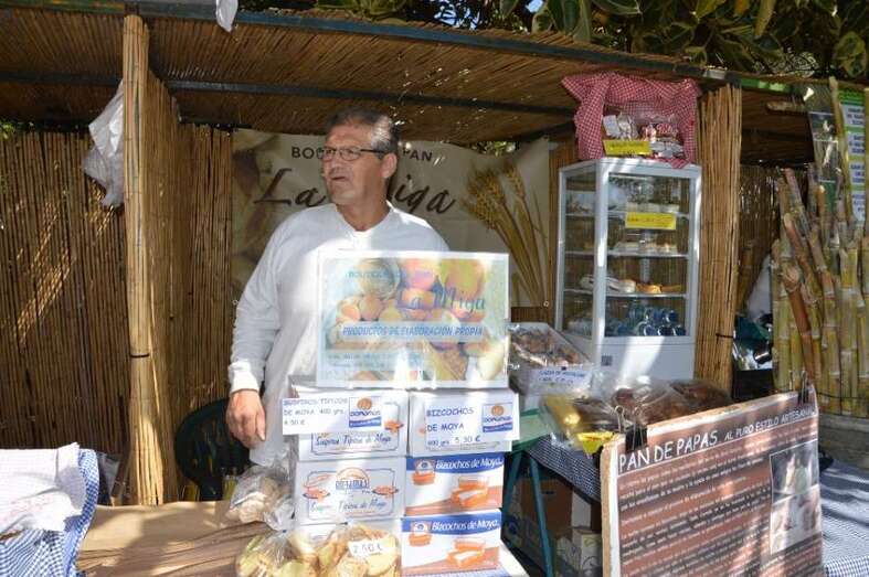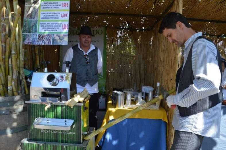 Cerca de cuarenta puestos se instalaron en el paseo central del recinto y en dos de sus callejones transversales. Allí, las miles de personas que se acercaron al enclave verde de San Juan pudieron observar en directo el trabajo de un miniaturista y un jaulero de Telde, un cantero de Valleseco, un tallista de madera, tejedora y muñequera de Las Palmas de Gran Canaria, además de una bordadora de Telde y un especialista en papel y cartón de San Mateo-. Además de endulzar los paladares con fresas y guarapos de cañas, y degustar vino y aceites de la tierra.