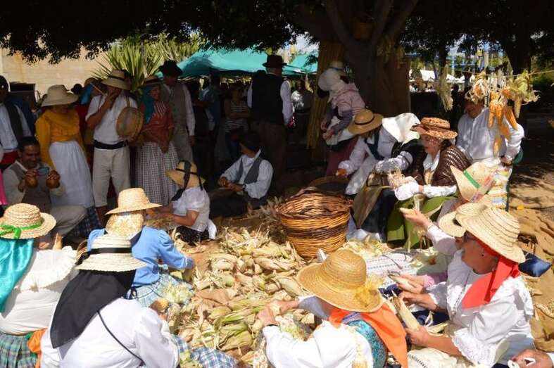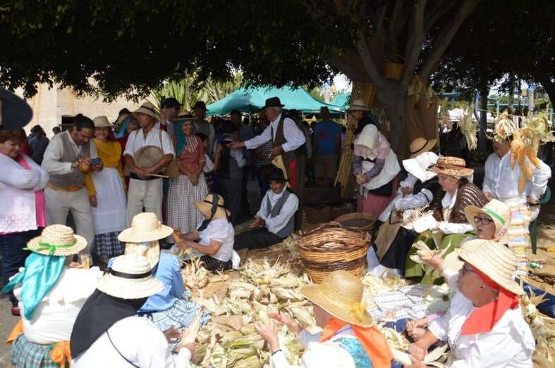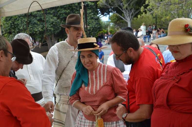 Telde.- Dos piñas fue lo que se llevó a modo de regalo la alcaldesa de Telde, Carmen Hernández, del grupo de mujeres que escenificaban en el parque urbano de San Juan la tradicional costumbre de la descamisá de piñas mientras cantaban romances y viejas y populares composiciones. La primera edila se integró en el conjunto y quitó con maestría y suma rapidez las hojas a varias piñas.