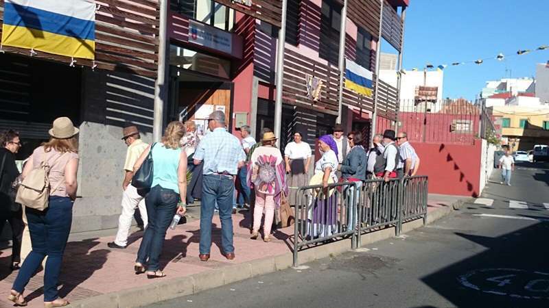 Al frente de los visitantes, Jesús, el presidente de la AV, quien se hizo acompañar por su vicepresidenta Loly y una concejala de la corporación local. “Fue un momento entrañable poder recibir en nuestra asociación de vecinos a un grupo muy numeroso de la isla vecina. Fueron recibidos por la presidenta y por la mayoría de los componentes de la junta directiva. Se les agasajó con música de nuestra parranda y también con la presencia del concejal de Festejos, Juan Martel”, apuntan desde la agrupación que ejerció de anfitriona.